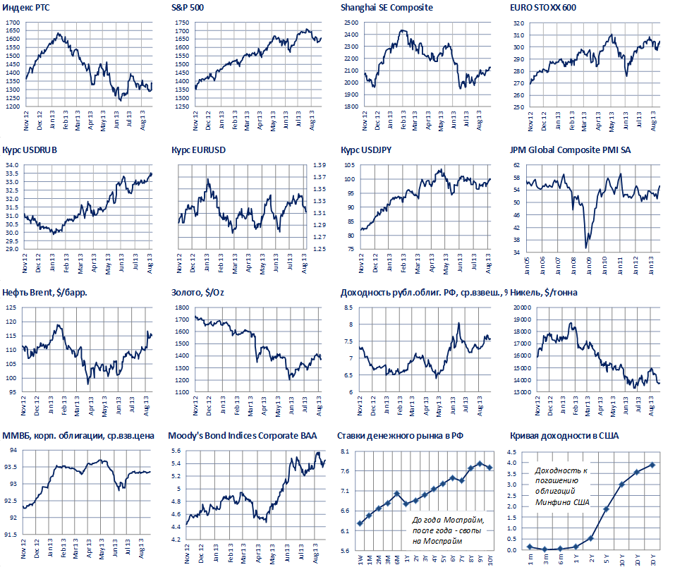 Перспективы сворачивания QE-3 и улучшения состояния на рынке труда продолжают оказывать давление на американские казначейские облигации. Вчера доходности десятилеток поднялись выше 3%. Возможное сокращение покупок Treasuries и ипотечных облигаций может стартовать уже на сентябрьском заседании ФРС. Индекс S&P по итогам дня прибавил 0,12%, европейский Stoxx 600 - 0,73%