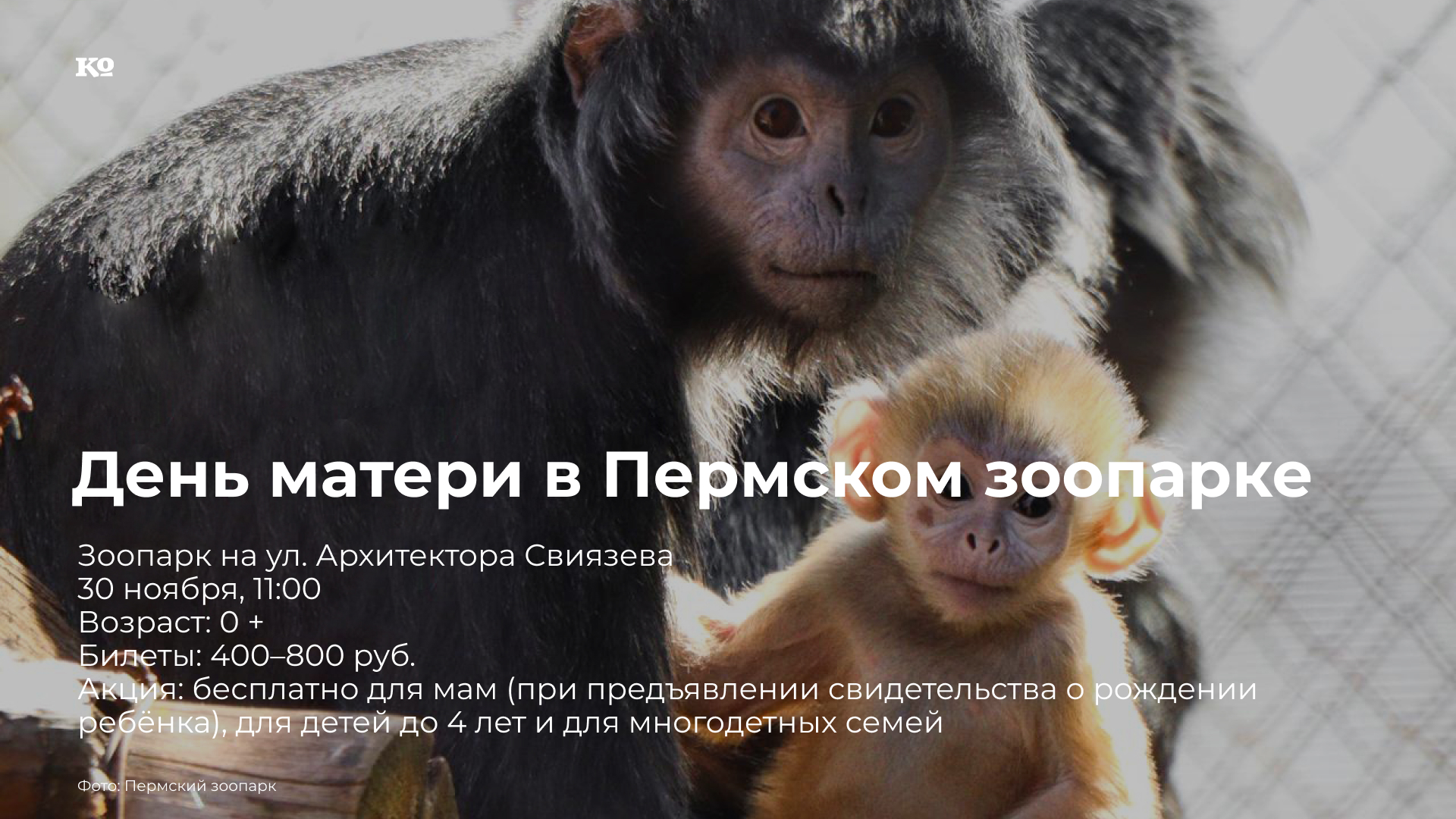 С 11:00 до 14:00 на территории Детского зоопарка будет проходить акция «Сердце для мамы». Все желающие смогут сказать «Спасибо» самой лучшей маме на свете на мастер-классе по изготовлению открытки-сердца с теплыми пожеланиями. В 15:00 в Амфитеатре стартует фотомарафон «Мамы пермского зоопарка». Все желающие получат маршрутные листы и отправятся делать трогательные кадры с заботливыми мамами — обитательницами зоопарка и их детёнышами. Подведение итогов и подарки для участников — в 16:00 в Амфитеатре. В 16:00 у главного входа состоится сбор на бесплатную экскурсию «Пушистые, пернатые, хвостатые мамы». Во время прогулки участники узнают, кому из звериных мам воспитывать детенышей помогает вся семья, у каких мам сейчас подрастают малыши, услышат личные истории пушистых мам: носухи, барса, белой медведицы и других. В 17:00 в лектории Детского зоопарка начнется показ документального фильма «Как мамы дикой природы защищают детёнышей».