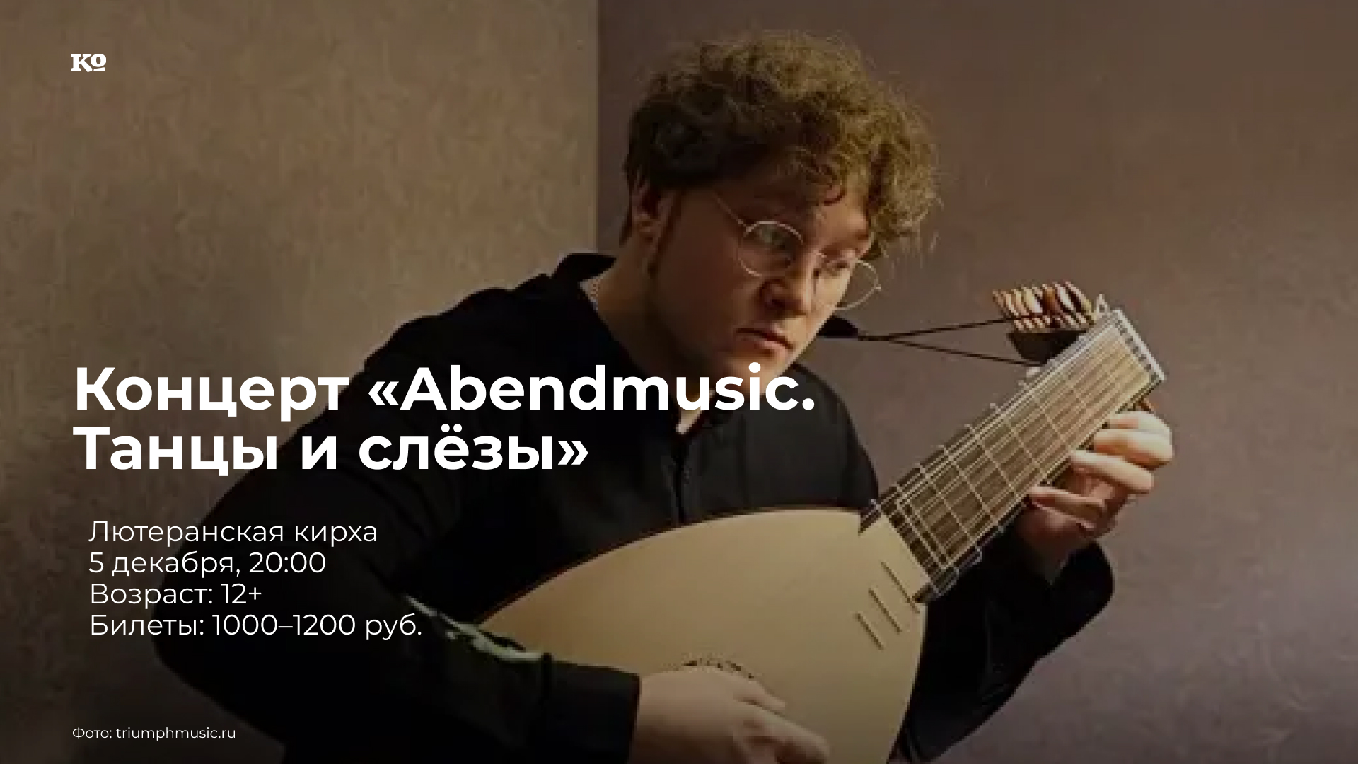 В исполнении талантливого музыканта из Санкт-Петербурга Ивана Петрова прозвучат произведения английского композитора и лютниста Джона Дауленда и малоизвестные музыкальные произведения из шотландских манускриптов XVI — XVII веков. Мелодичные и проникновенные композиции в аутентичном исполнении подарят слушателям настоящее путешествие в прошлое. Частная филармония «Триумф» продолжает проект «Abendmusic» («Вечерняя музыка») — цикл концертов духовной и светской музыки в особой атмосфере старинной церкви. Уникальная храмовая акустика позволяет получить незабываемый опыт восприятия музыки. Музыкант из Санкт-Петербурга Иван Петров — мультиинструменталист, исполнитель старинной музыки на лютне и обладатель уникального голоса — контртенора. С 2014 года — артист хора musicAeterna под руководством Теодора Курентзиса. Летом 2022 года дебютировал на Зальцбургском фестивале в партии Духа в опере «Дидона и Эней» Пёрселла.