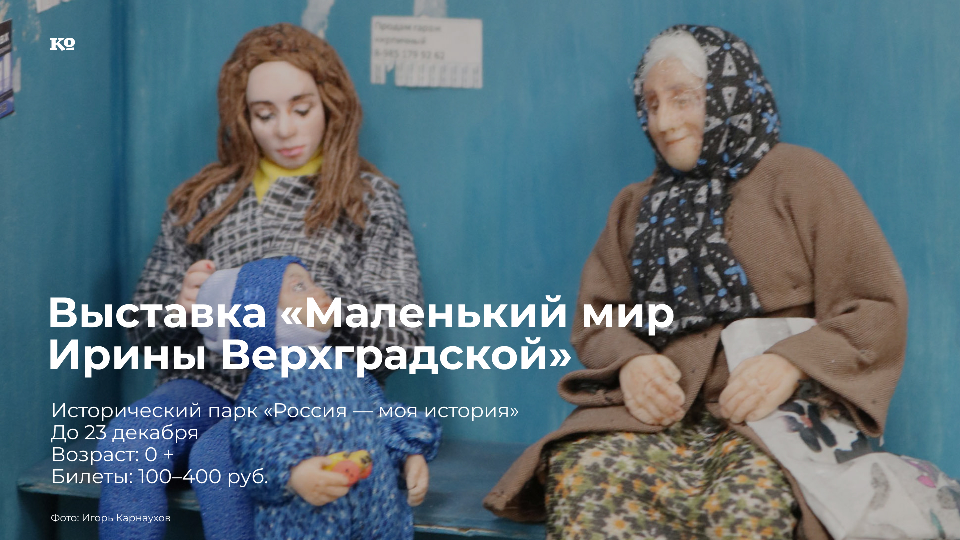 От многих мастеров, работающих в жанре авторской куклы, фигурки Ирины Верхградской (Новосибирск) отличаются особой эмоциональностью. Дело не только в искусном изготовлении, но и в чувствах, вкладываемых в каждого человечка, в продуманной мизансцене, в которой демонстрируется куколка. Это не игрушки — хотя родители с детьми на выставке и любят гадать, какую куколку они взяли бы домой поиграть… Тут у каждого образа свой характер, а за некоторыми угадывается целая жизнь с радостями и горестями, даром, что размером персонаж — с ладонь. Особенно всё это относится к коллекции «Дорогие мои старики», самой трогательной части собрания Верхградской: тут сцена «Кавалер» — хорохорящийся старичок перед соседками; древняя старушка у кроватки с крохой младенцем; одинокий старый фронтовик, отдыхающий после праздника, и другие пленяющие образы. Есть и крупные исторические личности, и кинозвёзды; герои сказок и литературные персонажи; есть коллекция «Национальный костюм».