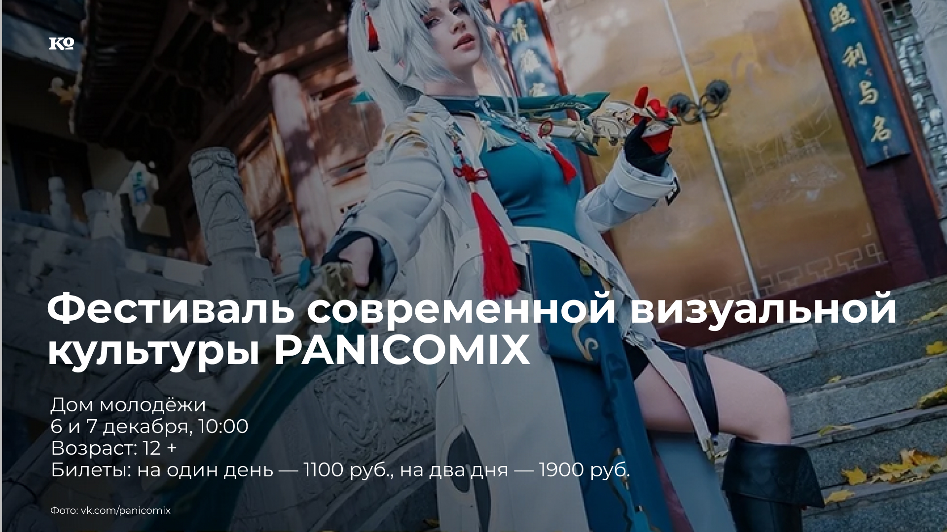 В этом году фестиваль поп-культуры в Перми сменил название на «Паникотик» и позиционируется как тёплый и пушистый. Среди предложений — помощь приютам для бездомных животных. На главной сцене пройдёт конкурс косплееров в форматах «Дефиле» и «Танцы», на малой сцене — квизы, игры, турниры мечников и поединки рестлеров, мастер-классы по созданию и ремонту костюмов, аксессуаров и париков, лекции по созданию комиксов, проведению косплеев и монетизации своего хобби; большая ярмарка и «Аллея авторов», тематические кафе. Специальные гости — косплеер Кристина Косплей, автор графических романов Харальд Бьёрнсон и актёр озвучания аниме Александр Скиданов. Кроме того, в программе возможность поиграть в «Тайного Санту» (обмен подарками по принципу «кот в мешке») и «ДНД-игротека»: шесть разных приключений, каждое примерно по 60 минут.