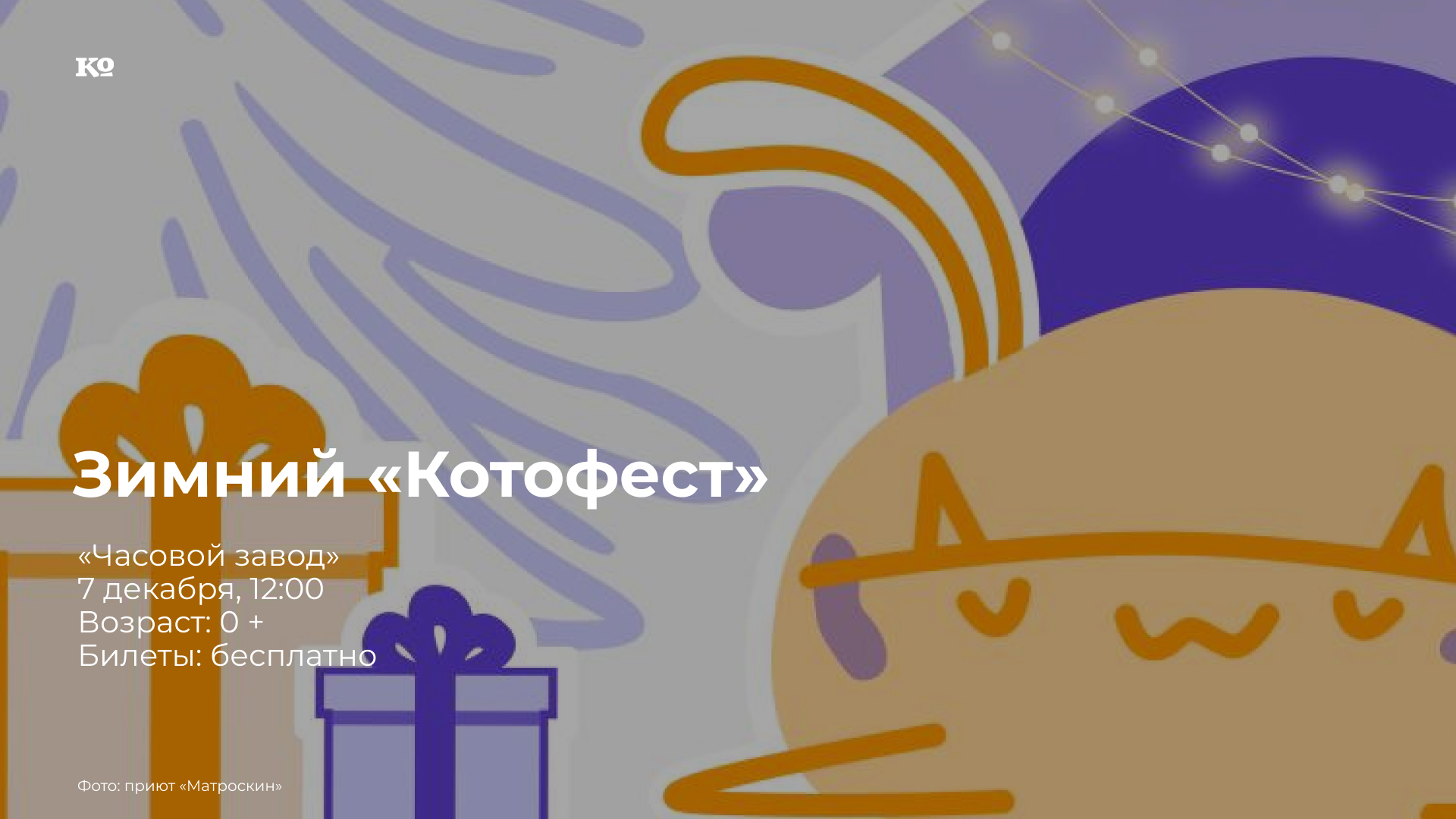 В программе «самого тёплого и пушистого» зимнего события — выставка котиков и собак из приютов, фуд-корт с праздничной едой, живая музыка, котомаркет с интересными вещицами для людей и котиков, зимние мастер классы, лекции об уходе за кошками от ведущих ветеринаров Перми. На праздник можно будет принести и положить под ёлку подарки для подопечных приютов. Среди специальных событий зимнего «Котофеста» — кулинарный конкурс на лучшие печеньки, выступление музыкальных групп Ecperance и «Живая музыка», детское шоу «Радость рядом», кинопоказ мемных котиков, шоу бариста и лекция о кофе, благотворительное котокафе «Котовский» с авторскими десертами от кондитера Алексея Иванова, «волшебный» аквагрим, мастер-классы по росписи пряников, по созданию авторского шоппера, деревянного подвеса или панно в виде котика.