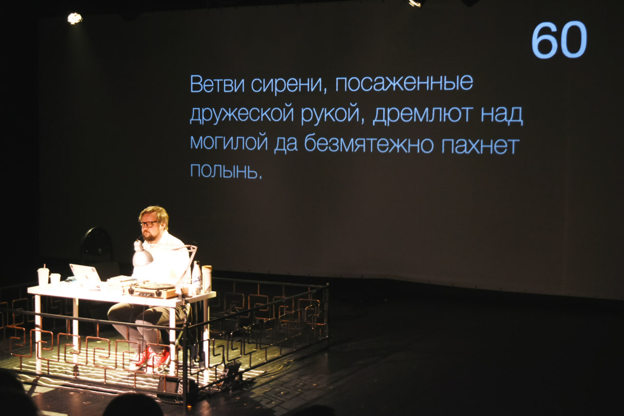 Лауреатом второй степени стал проект Дмитрия Волкострелова «Русская смерть. Воспоминания о спектакле» (18+). Прошу прощения за неприличное слово «проект» в применении к театральному событию, но у Волкострелова именно так — проектно, очень технологично — спектакли и делаются, и тот, что был показан на «Монофесте», не исключение.