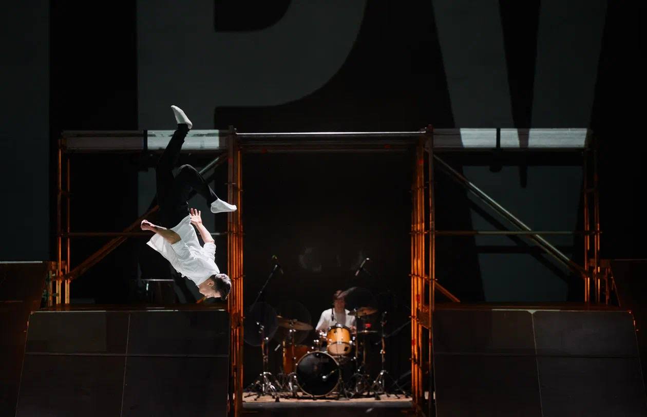 Примерно так же складывались отношения между классическим балетом и движенческой партитурой паркурщиков. Режиссёр и хореограф Юлия Новожилова, по основному роду занятий — постановщик цирковых шоу — учла не только профессиональные навыки спортивных молодых людей, но и традиции высокой балетной сцены. Танец шестерых юношей и девушки складывался из лирических дуэтов, поединков, массовых сцен; были и вполне балетные поддержки, и другие элементы из арсенала классического танца. Создалось впечатление, что солистка Полина Пушкарёва — не только артистка цирка, но и танцовщица: она старательно тянула стопы, красиво делала шпагаты, и линия рук у неё была вполне балетная.