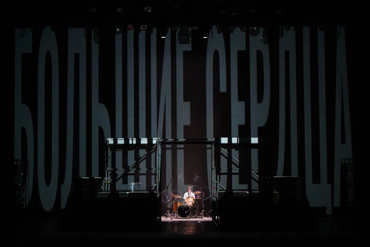 Вообще, перед «НМХТ» с завидной лёгкостью раскрываются все двери: их спектакли проходят в бассейне «Олимпия» в нерабочее время, в оранжерее ботанического сада ПГНИУ, в других неочевидных и порой труднодоступных локациях. Лёгкость и дерзость без малейшей агрессии — отличительные черты всех действий этой театральной компании. Юбилейный проект «Большие сердца» (0+) был именно таким.
