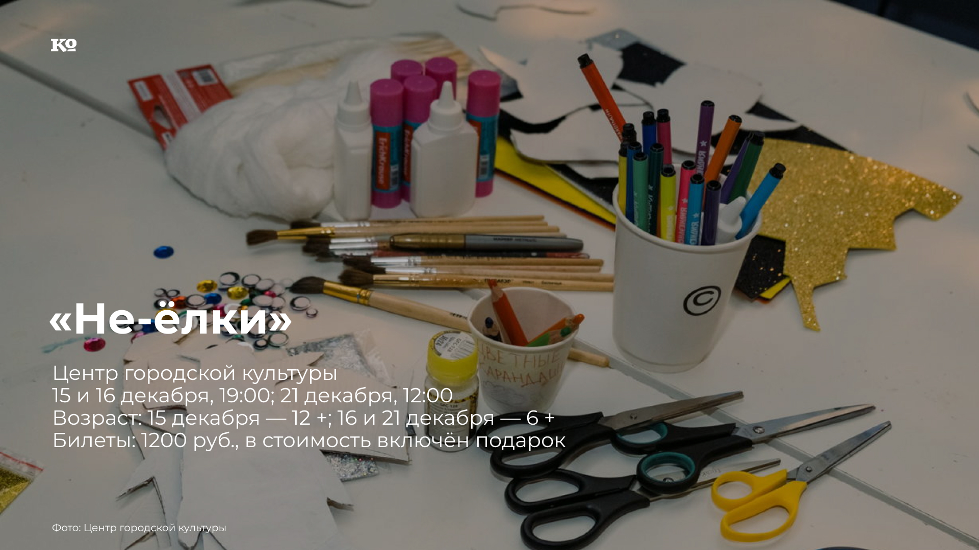 «Не-ёлки» – это нестандартные и интересные мастер-классы к празднику. Для детей. «Отпечатки зимы. Ёлочные игрушки своими руками» (16 декабря): дети освоят азы чеканки и своими руками создадут уникальную ёлочную игрушку — маленькую сияющую сказку из морозных узоров и снежных героев. Ведущая — Маша Колпащикова, искусствовед, педагог, сотрудница Центра городской культуры. «Письмо в новый год. Капсула времени» (15 и 21 декабря): мастер-класс – медиации по подведению итогов, создание своей уникальной «капсулы времени». Ведущая — Алиса Терёхина, независимый арт-медиатор, экскурсовод и сотрудник арт-резиденции для детей, подростков и молодых взрослых «Тут». На следующей неделе «не-ёлки» продолжатся.