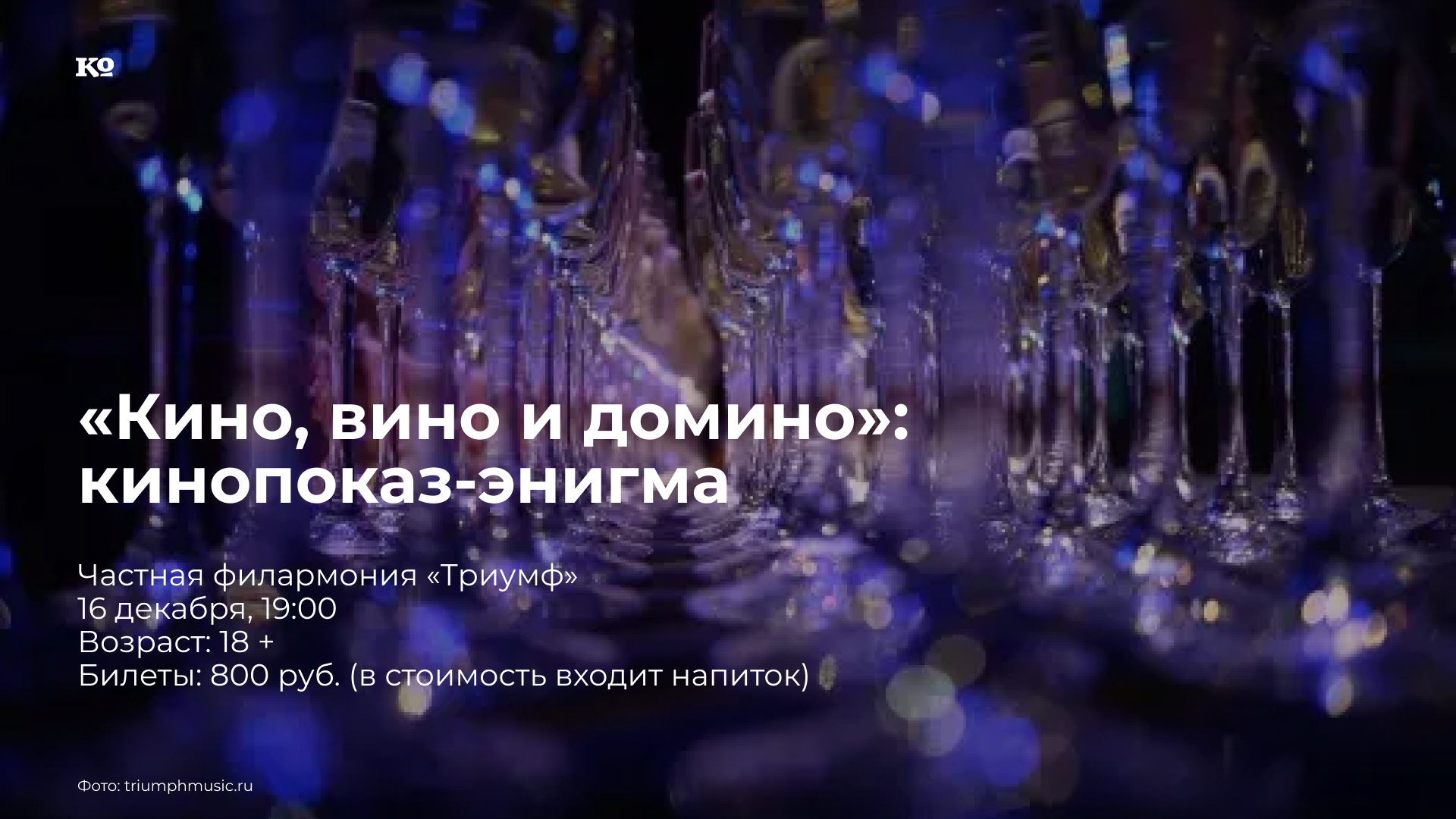 В преддверии Нового года и Рождества руководство киноклуба решило до начала кинопоказа оставить название фильма в секрете. В декабре в Триумфе традиционно проходят события в формате Enigma, когда заранее неизвестен исполнитель или программа концерта. Зрителей будут ждать подарки и музыкальные сюрпризы. После кинопоказа состоится его обсуждение с экспертами – известными в Перми специалистами в разных сферах.