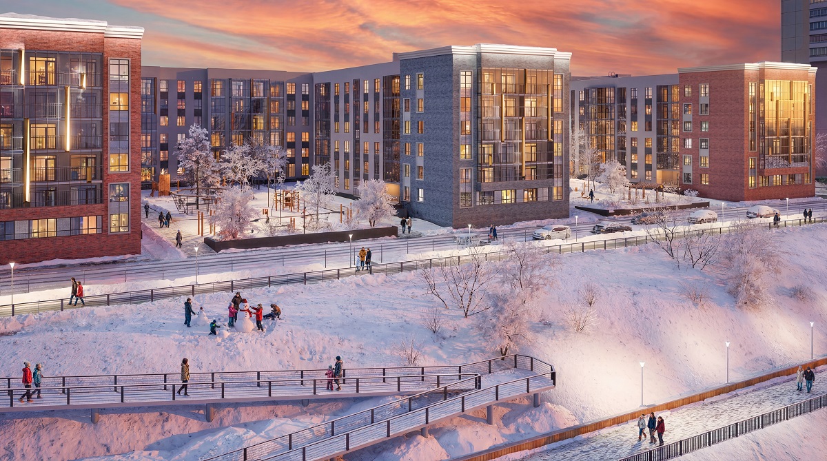 Шестиэтажные дома из кирпича — и всего шаг до новой набережной, уютные дворы без машин, продуманное озеленение и зонирование — каждый житель найдет свой уголок. Просторные холлы, сквозные подъезды, колясочные и кладовые — всё для комфортной жизни в новом доме. Квартиры от студий до 4-комнатных евроформата, на первых этажах — варианты с роскошными террасами и квартиры со вторым светом. Уже в следующем году новосёлы получат ключи от I очереди.
