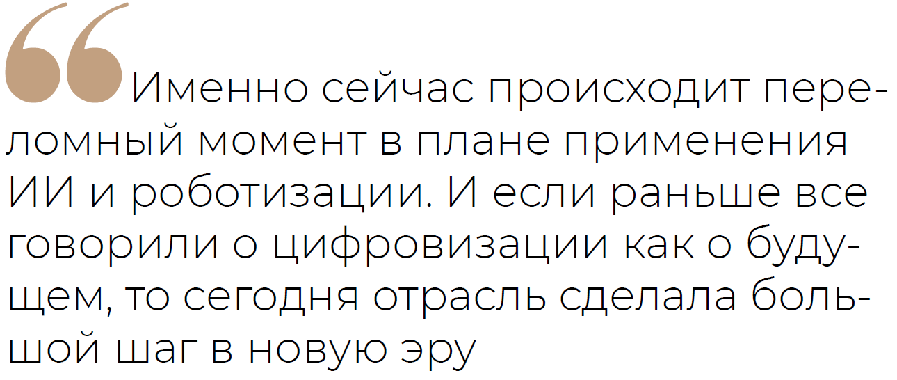 Заместитель директора по цифровым продуктам NS Digital (ООО «Нефтьгазисследование», ГК «Нефтьсервисхолдинг») Алексей Соломин считает, что именно сейчас происходит переломный момент в плане применения ИИ и роботизации. И если раньше все говорили о цифровизации как о будущем, то сегодня отрасль сделала большой шаг в новую эру.