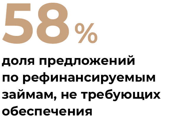 Кроме того, банки стали менее требовательны к рефинансируемым займам. Доля предложений, не требующих обеспечения, выросла до 58% (+13% с января), а предложений без обязательного страхования — до 48% (+4%).