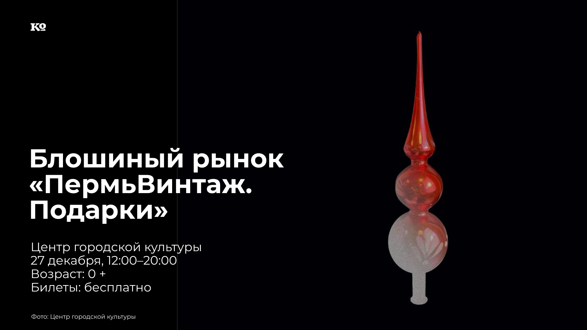 Предновогодняя «блошка» «ПермьВинтаж. Подарки» — место, где оживает история. Блошиный рынок — это место, где удача встречается с безупречным вкусом. Здесь можно встретить всё: от виниловых пластинок, меняющих настроение вечера, до редкой бижутерии, которая выглядит круче любого люкса. В продаже: винтажные ёлочные игрушки, одежда и обувь, сувениры ручной работы, антикварные развалы.