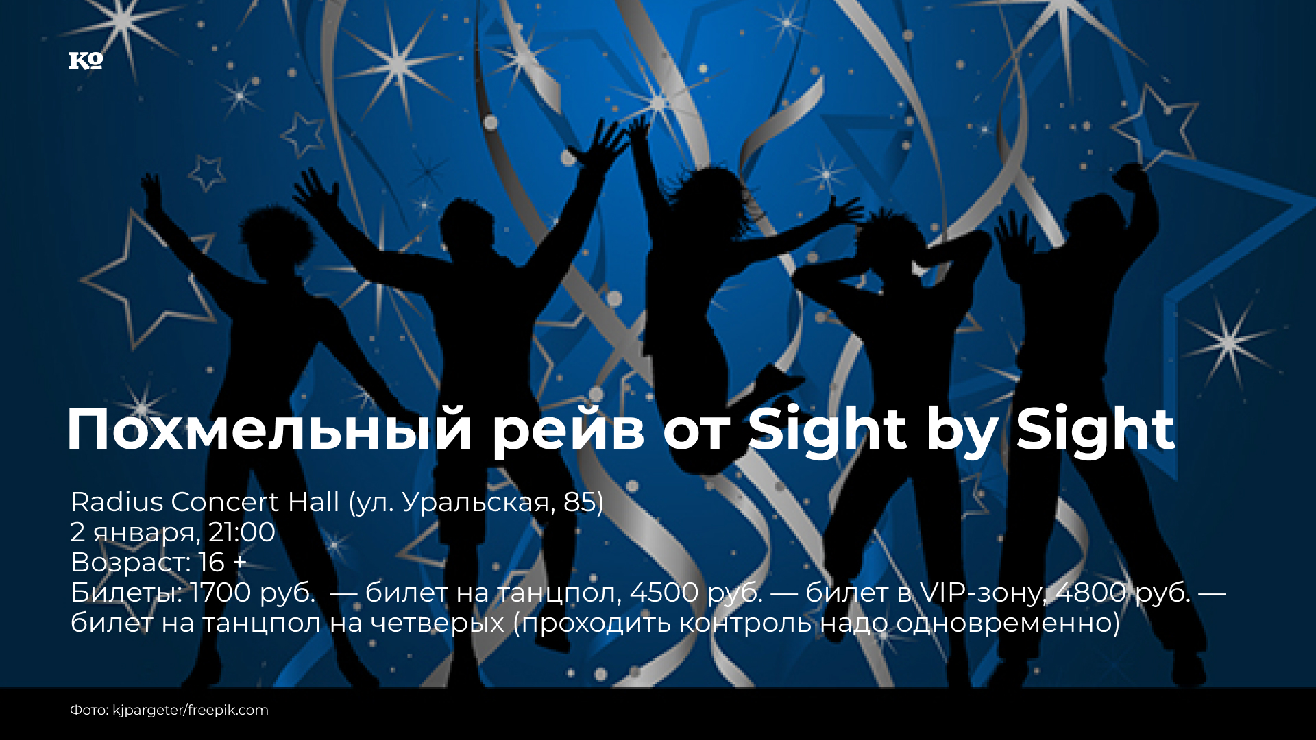 Ежегодный хэнговер от команды Sight by Sight с участием пермских резидентов и специальных гостей. Пермский лейбл Sight by Sight, работающий в стилях Bass House, Bassline, Drum&Bass и UK Garage, известен своими летними рейвами в автобусном парке, где собирается 2500 гостей, и зимними посленовогодними хэнговерами. Обещано 9-часовое праздничное путешествие сквозь разные стили: бас-музыка, drum & bass, hardstyle и другие, 15 резидентов лейбла и special guests, среди которых Baadwrk, B-founder, Spacexzol, Maks Solo, Dispa, Graved.