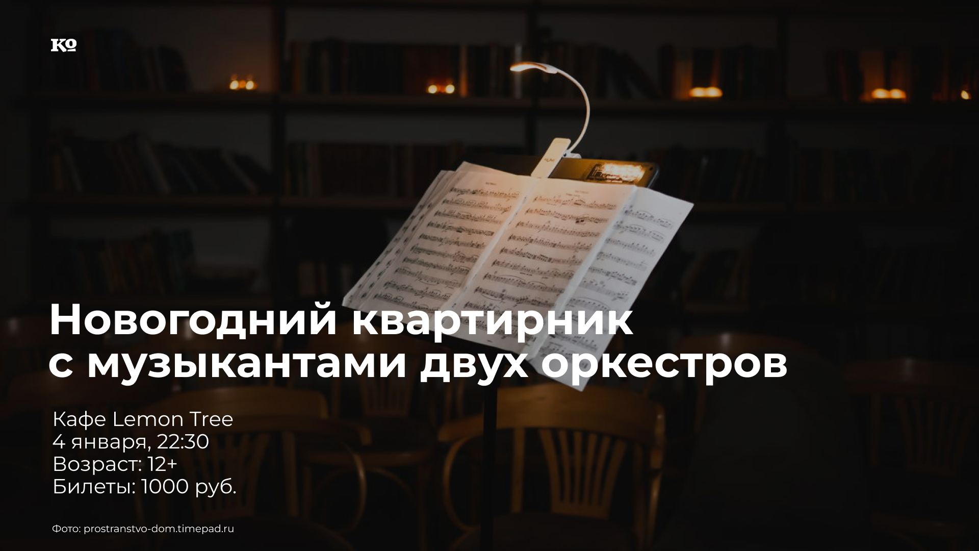 Концерт-квартирник при свечах с артистами оркестра Пермского театра оперы и балета и оркестра MusicAeterna. Музыка и уютные беседы с музыкантами за чашкой чая в мягких пледах. В программе: Квартет № 30 для гобоя и струнных, фа мажор Вольфганга Амадея Моцарта и Квартет для гобоя и струнных, фа мажор Фридриха Дотцауэра. Участники и исполнители: Елизавета Бабченко (гобой и ведущая вечера) — концертмейстер и солистка симфонического оркестра Пермского театра оперы и балета, Елена Райс (скрипка) — артистка оркестра MusicAeterna (Санкт-Петербург), Дмитрий Ильин (альт) — артист симфонического оркестра Пермского театра оперы и балета, Роман Ефимов (виолончель) — солист симфонического оркестра Пермского театра оперы и балета.