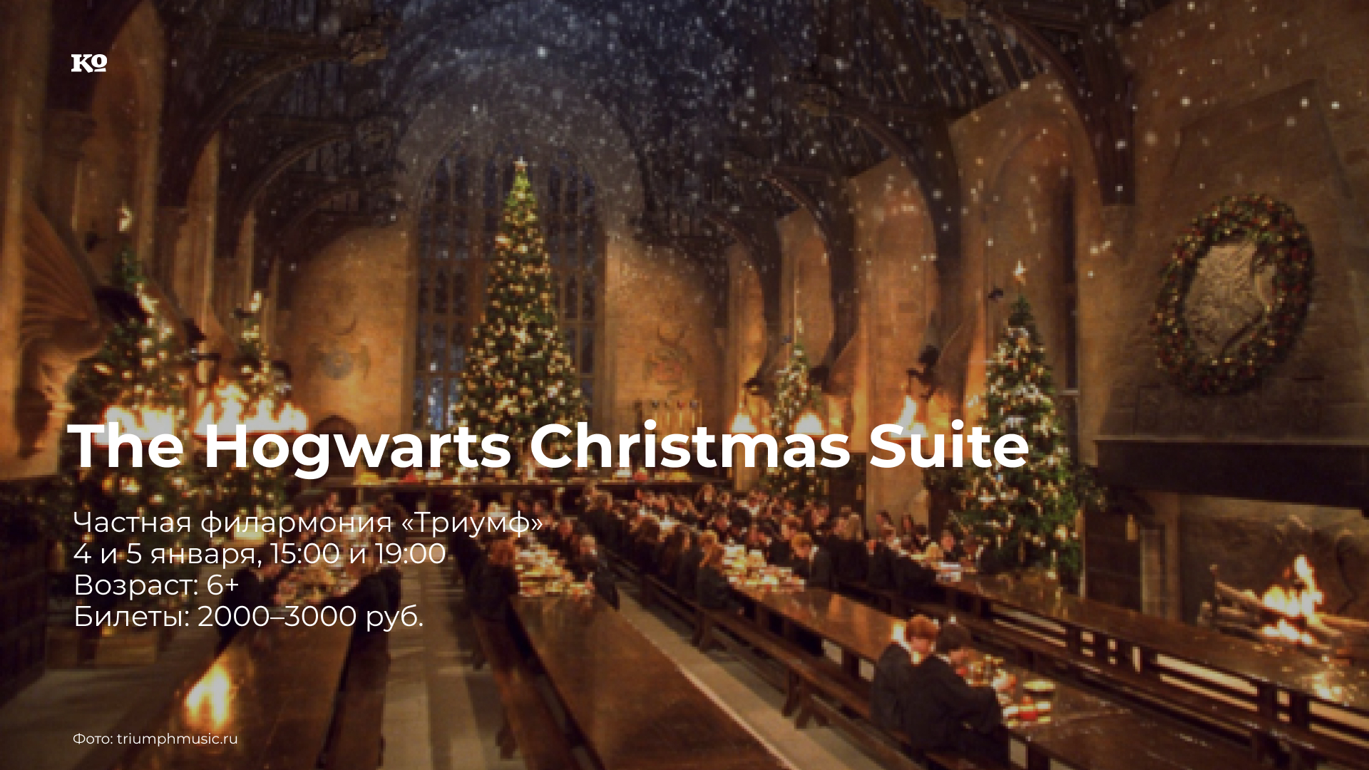 Рождественская музыка из Гарри Поттера в исполнении симфонического оркестра и хора. На два дня частная филармония прекратится в настоящий рождественский Хогвартс, где Хагрид тащит елку из волшебного леса. Проектный оркестр Christmas Orchestra под управлением дирижера Дениса Сона и хор Triumphus Vox под руководством художественного руководителя и хормейстера Анастасии Гуляевой исполнит сюиту в 15 частях из музыки Джона Уильямса из фильмов о Гарри Поттере. Аранжировка для оркестра и хора выполнена композитором Георгием Федоровым по заказу «Триумфа». Билеты на событие, купленные онлайн на сайте «Триумфа», можно получить в виде настоящего именного письма из Хогвартса с сургучной печатью.