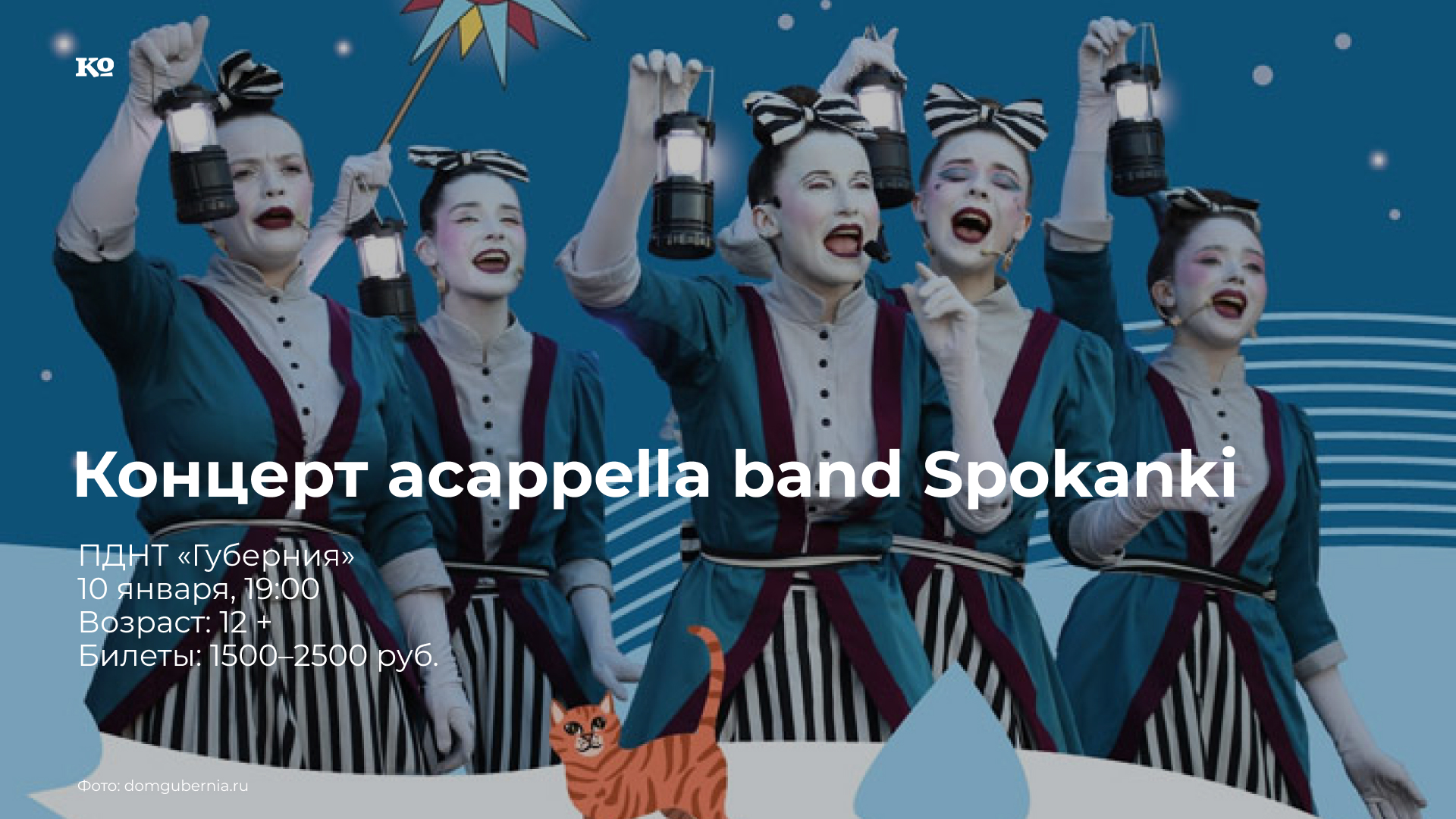 В рамках всероссийского фестиваля зимнего фольклора «Сочельник» – концерт коллектива, чьи выступления, говорят, не повторяются никогда, импровизированны и при том филигранны; победителей проекта «Московская acappella», участников Ural Music Night, фестиваля «Дикая мята», Dubai EXPO, флагманского проекта, посвящённого 100-летию Коми-Пермяцкого округа – фестиваля «Этноаваргард». Концерт «восьми сестёр из мистической страны SpokanLand», каждая песня которых – как маленький спектакль.