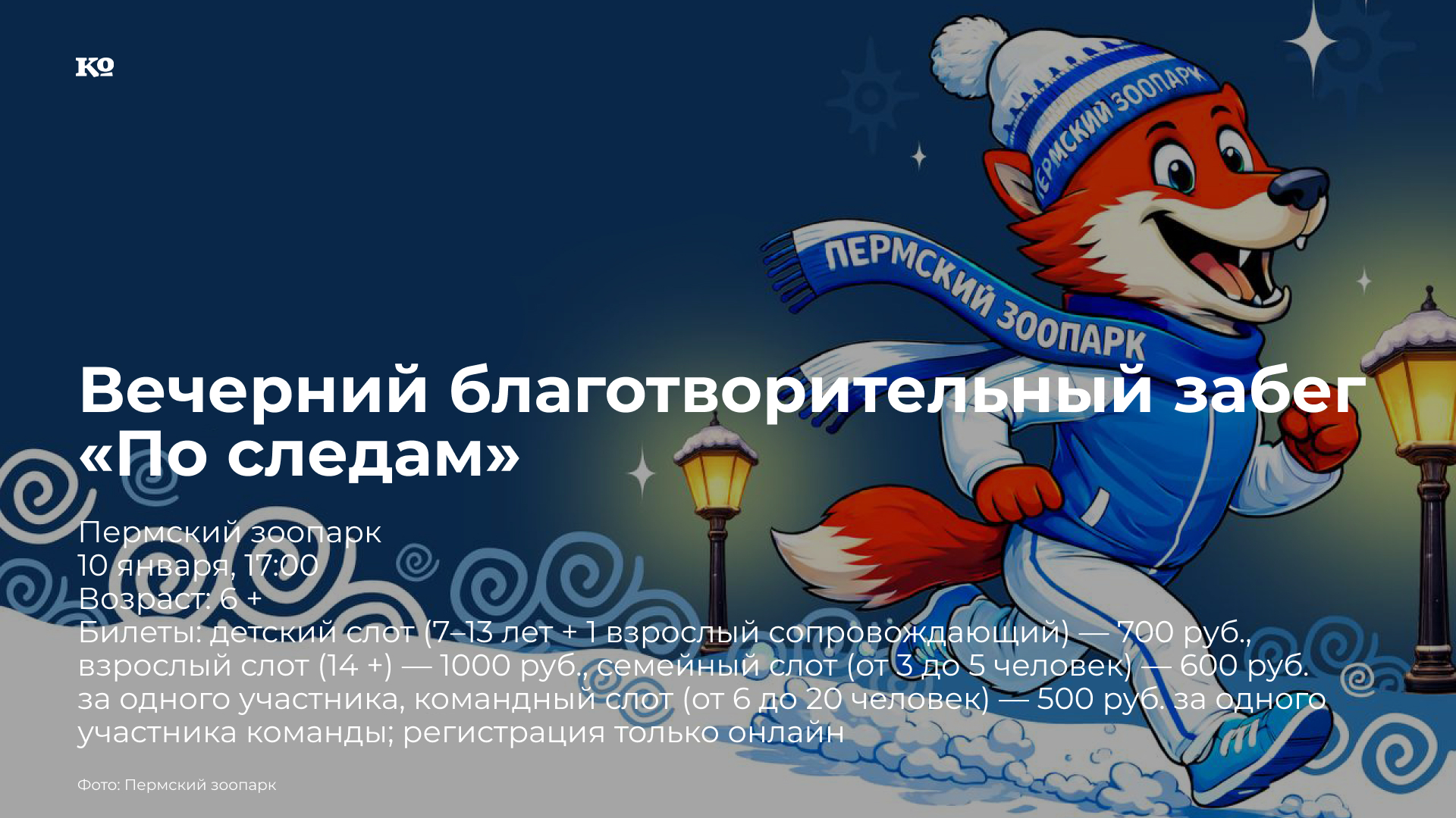 Первый вечерний благотворительный забег по уникальной дистанции – один полный круг по зоопарку, на трассе есть несколько остановок в павильонах с животными, где спортсменам нужно будет проверить свои знания об обитателях зоопарка. Помогать ориентироваться на маршруте будут пейсеры. Необязательно ставить рекорды скорости. Самый важный шаг — тот, который вы делаете. Идите в своём ритме, наслаждайтесь маршрутом, читайте истории о животных. Главное — не останавливаться, это не гонка на скорость, а просветительский маршрут, где вас ждут интересные факты о животных и короткие рассказы от сотрудников. 100% стартового взноса пойдёт напрямую на обогащение среды обитания животных: игрушки, гамаки, канаты и развивающие конструкции для питомцев зоопарка. Каждый участник получит бумажный путеводитель с картой, памятную медаль и фото на память.