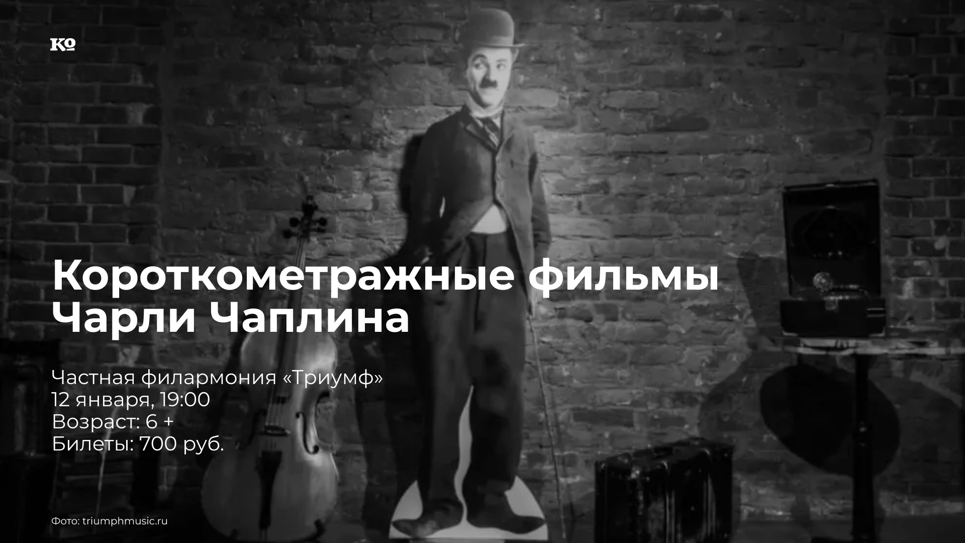 Проект «Немое кино в Триумфе» позволяет зрителям раз в месяц прикоснуться к ушедшей эпохе известного пермского кинотеатра, погрузиться в его особенную атмосферу, познакомиться с золотыми хитами немого кинематографа и поделиться своими впечатлениями о старом кино. Пианист Александр Колесников выступит в роли самого настоящего тапера и сопроводит картину стилистически и эмоционально соответствующей импровизационной музыкой. Весь X сезон проекта посвящён легендарному Чарли Чаплину — художнику, мыслителю, визионеру кинематографа. На этом показе немого кино — подборка короткометражных фильмов Чарли Чаплина на тему кино.