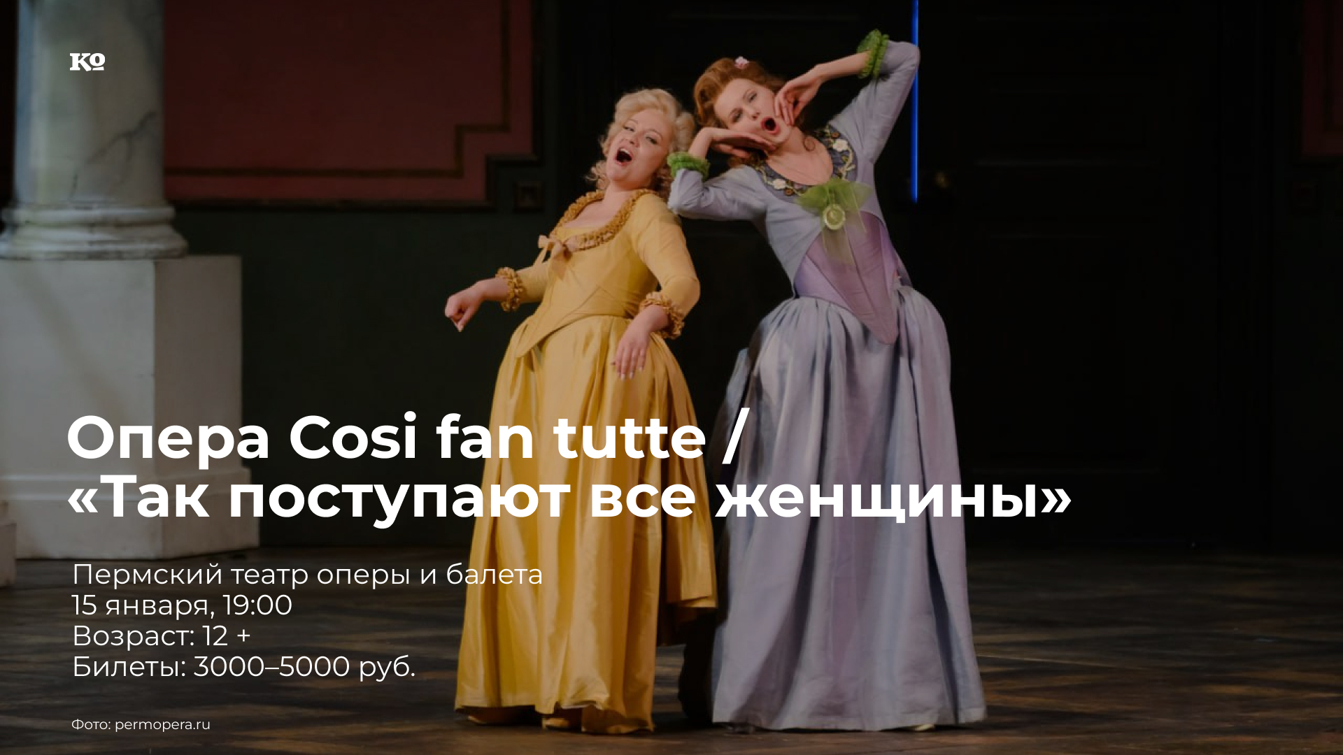 Легендарный спектакль в постановке режиссёра Матиаса Ремуса под музыкальным руководством Теодора Курентзиса, открывший в 2011 году историю «Пермского Моцарта», будет исполнен в исключительном составе: в роли Фьордилиджи — Надежда Павлова, Дорабелла — Наталия Ляскова, Феррандо — солист Михайловского театра Дамир Закиров, Гульельмо — Игорь Подоплелов. Впервые в истории российской сцены опера была поставлена в аутентичной манере. Старинными в этом спектакле являются не только инструменты или вокальные манеры певцов, но даже ткани и крой костюмов выполнены по технологиям конца XVIII века, а декорации повторяют интерьер неаполитанской виллы времен позднего барокко. При этом сюжет о том, как две сестры стали жертвами любовного розыгрыша, устроенного их женихами накануне свадьбы, сохраняет свою актуальность в любую эпоху. Затянутые в паутину противоречивых связей, запутавшиеся в неоднократных переодеваниях, шестеро главных героев оказываются перед лицом таких психологических глубин, о которых даже не думали.