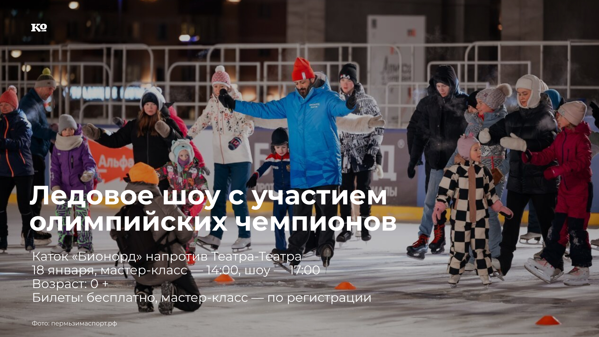В рамках «Фестиваля зимнего спорта» состоится мастер-класс фигуриста Ильи Авербуха. В ледовом шоу примут участие олимпийские чемпионы по фигурному катанию Алексей Ягудин, Татьяна Тотьмянина и Максим Маринин, а также чемпионы мира Албена Денкова и Максим Ставиский, призёры российских и международных соревнований Артём Ковалёв, Ксения Синицына, Матвей Ветлугин, Андрей Ежлов и Софья Шевченко. В программе также номера заслуженных артистов цирка на льду Марии Голубевой и Алексея Ускова.
