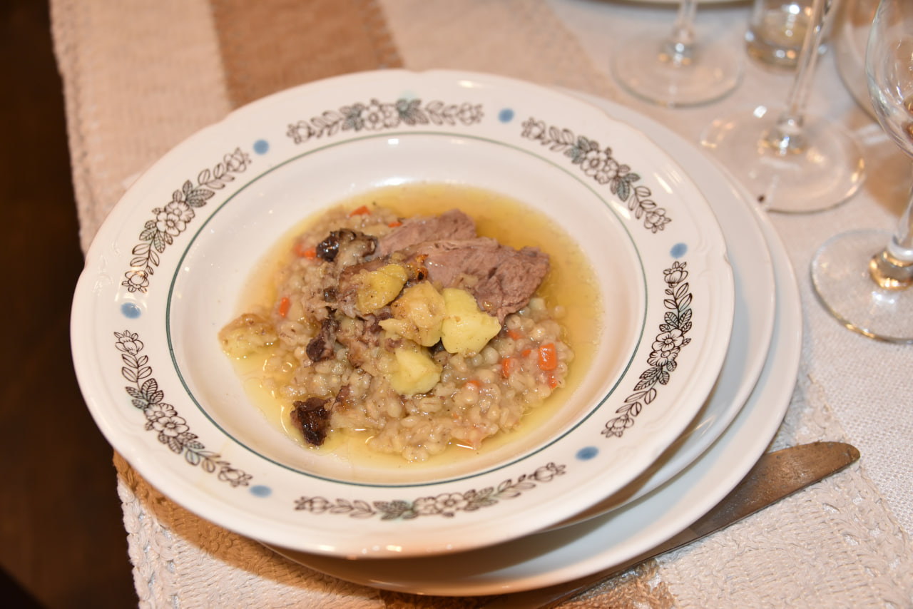Главным блюдом застолья стали шти молостные от бабы Насти из деревни Гадья — по-настоящему старинный, староверский рецепт очень сытной, очень зимней каши из перловки с костным мозгом. Это блюдо Сергей с большим успехом представлял на кулинарной олимпиаде «Легенда». По мнению Елены Шперкиной, шти вполне достойны звания уральского оссобуко и ничем не уступают итальянскому конкуренту. Дополненная корнеплодами и пряными травами перловка в насыщенном бульоне из растворённого костного мозга с кусочками разварной говядины — это первое и второе блюдо сразу. Именно так готовили в старину в русских печках.