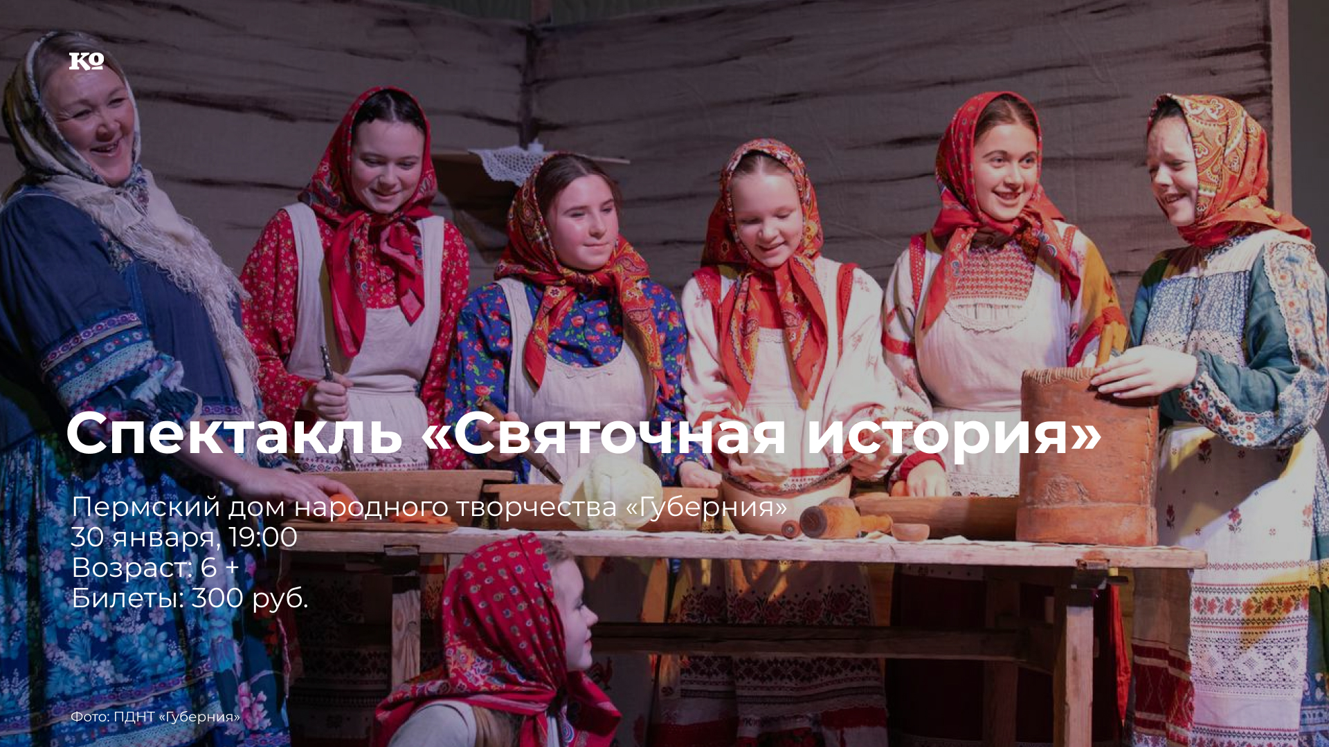 Постановка эстрадно-театральной студии «Озарение» по мотивам сказок Евдокии Никитичны Трясциной из села Октябрьское, чьи произведения являются национальным достоянием России и ненавязчиво учат добру и смекалке. В игровой форме зрителям покажут особенности фольклора Прикамья. В спектакле прозвучат песни, приметы, поговорки, будут инсценированы обычаи Пермского края. В речи персонажей сохранён местный диалект. Этот спектакль будет понятен школьникам и подросткам. В нём говорится о дружбе и будущей любви, о гаданьях и ряженых, о чудесах святочного времени, о традициях нашей страны.