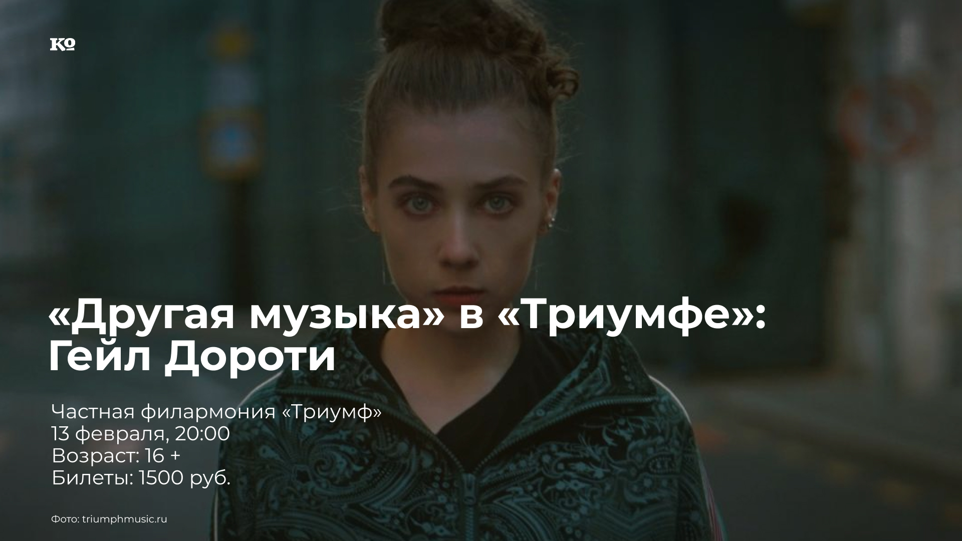 «Другая музыка» — это музыка с танцами и драйвом на танцполе и киловаттами звука и света. Гейл Дороти — голос московского андеграунда. Она создаёт музыку, которую невозможно уложить в одно жанровое русло. Её альбомы поражают диапазоном: прозрачная электроника перетекает в фольклорные напевы, а народная мелодика внезапно взрывается яростным панк-роком, чтобы затем отстроиться в чеканный классический бит. И, что удивительно, эти резкие переходы сплавляются в живой, дышащий звуковой мир, где каждое смешение обретает свой смысл. В центре большого сольного концерта — новый альбом «Няня», который сама исполнительница описывает как «музыкальную практику добаюкивания» травм от младенчества до взрослой жизни.