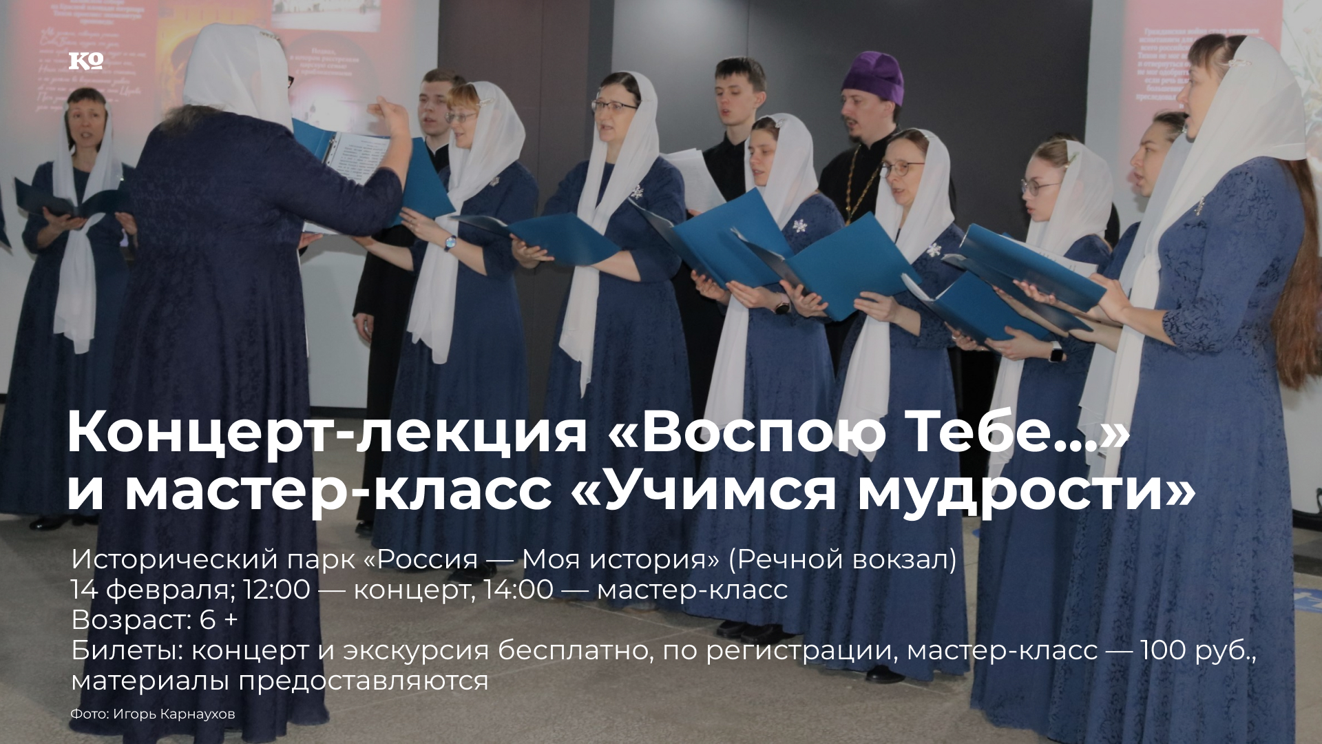 В пространстве выставки «Голгофа патриарха Тихона» в исполнении хора «Покров» Пермской духовной семинарии (руководитель Ольга Морозова) прозвучат песнопения православного богослужения. Ведущие концерта расскажут, для чего предназначен тот или иной акафист, стихира или тропарь, в какой момент службы исполняется и что призван передать. Кроме того, прозвучат православные стихи и духовные сочинения современных композиторов. По окончании — экскурсия по выставке «Голгофа патриарха Тихона», экскурсовод — Александра Белозёрова. В семейной творческой мастерской Исторического парка состоится мастер-класс «Учимся мудрости» по созданию лэпбука, памятной сувенирной книжечки по мотивам выставки.