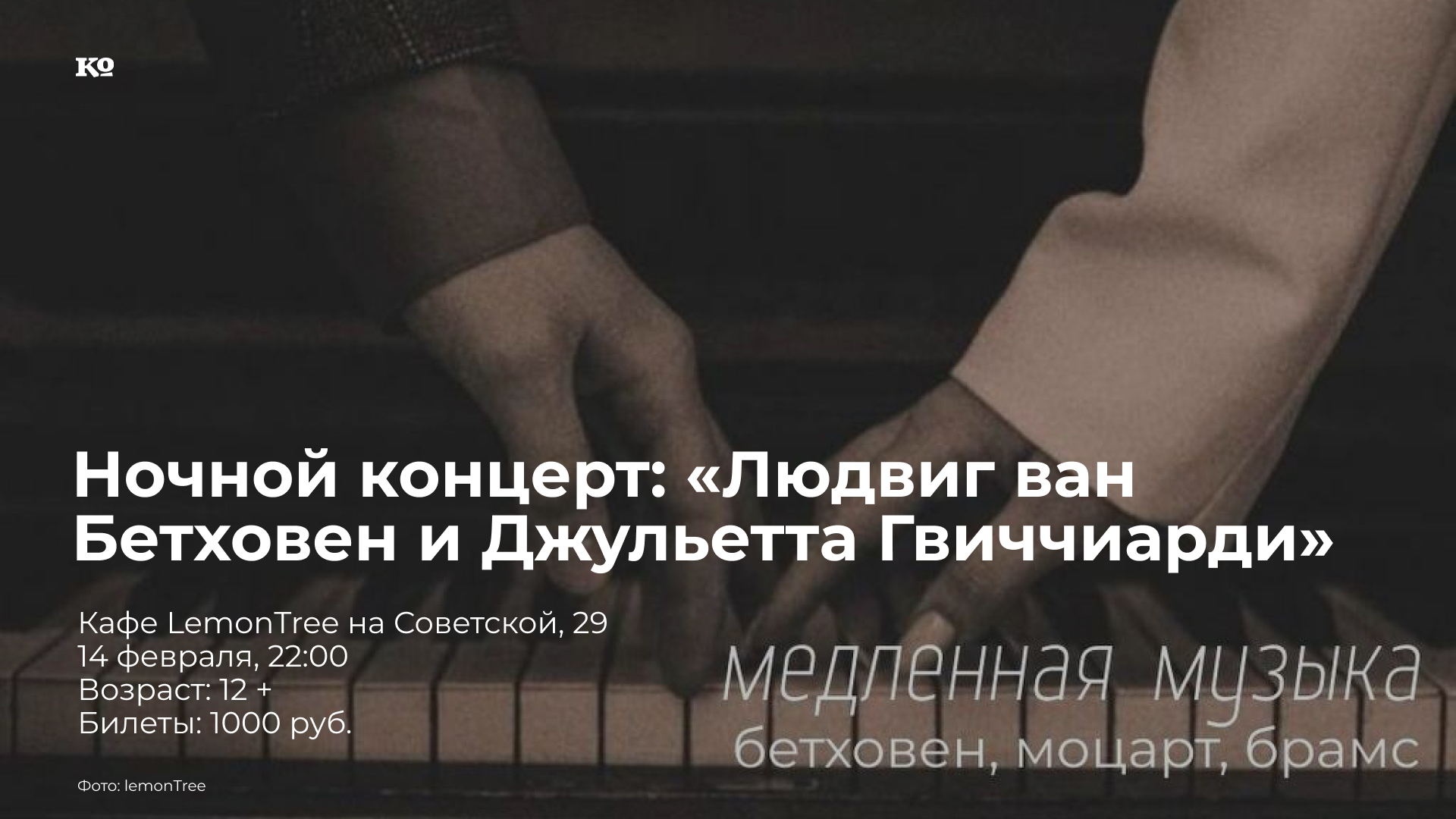 Историю безответной любви известного композитора можно прочувствовать в сонате для фортепиано №14, или, как её назвали позднее, «Лунной сонате». Бетховен был влюблён в юную графиню, свою ученицу, и хотел жениться на ней. Композитор посвятил «Лунную сонату» именно ей. Но Джульетта вышла замуж за композитора Венцеля Галенберга — богатого, но не очень талантливого. Бетховен продолжал хранить её портрет вместе со знаменитым «Гейлигенштадтским завещанием». «Лунная соната» до сих пор остаётся одним из самых исполняемых и цитируемых произведений в истории музыки. В свете свечей солист симфонического оркестра Пермского театра оперы и балет, лауреат международных конкурсов Алексей Сучков (фортепиано) исполнит медленные части сонат Моцарта, Бетховена и пьесы Брамса.