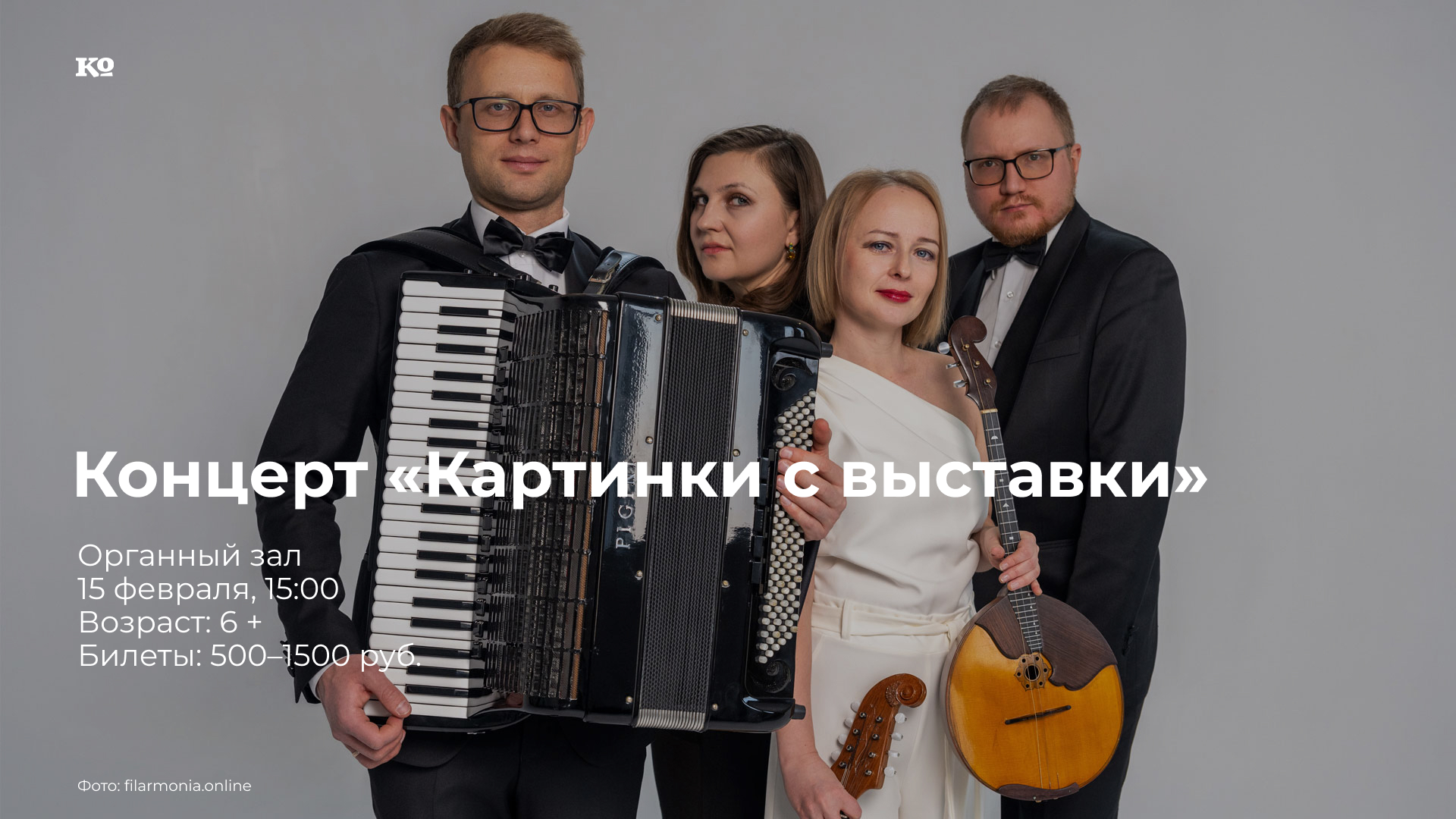 Концертная программа известных артистов Ирины Стачинской (флейта), Александры Скрозниковой (мандолина), Александра Веретенникова (аккордеон) и Михаила Турпанова (фортепиано). Творческий союз музыкантов сложился еще в пору студенчества. Сочетание флейты, мандолины, аккордеона и фортепиано раскрывает новые грани музыки, переложенной для такого необычного состава. Центральное сочинение программы — уникальная транскрипция для флейты, мандолины, аккордеона и фортепиано ярчайшего сочинения Модеста Мусоргского. Состоятся премьеры сочинений современных композиторов Анастасии Дружининой, Яна Круля, Эльмира Низамова и Дениса Хорова.
