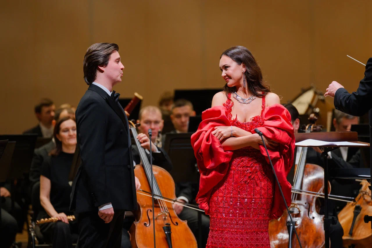 Звезда вечера Аида Гарифуллина — не просто супердива, которая поёт в Ла Скала и Метрополитен-опера, на Арена ди Верона, на Зальцбургском фестивале и на открытии Олимпийских игр; она — иконический образ оперной звезды: мощное сопрано с красивыми колоратурами, внешность супермодели — стройная, с прекрасными длинными волосами и совершенным лицом, отмеченным мягкой и пикантной татарской восточностью; особого упоминания заслуживают её концертные наряды, отличающиеся броской неповседневностью.