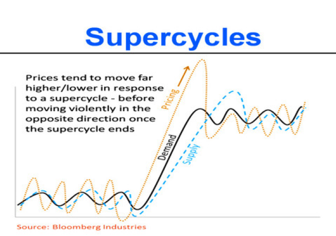 При наличии дисбалансов спроса и предложения компании, инвестируя в отрасль с высокими ценами, часто оказываются в ситуации переизбытка (overshooting) мощностей. Подобный вариант показан ниже. Цены при этом снижаются также избыточно, после чего самые неэффективные (читай с самой высокой себестоимостью) мощности выводятся из оборота и цены выравниваются. В случае спокойной обстановки в отрасли они должны стабилизироваться на уровне самого маржинального, т.е. самого затратного производителя.