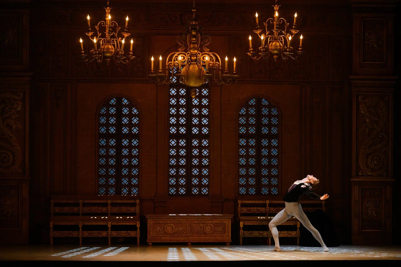 Следуя своей линии борьбы с условностями, Мирошниченко во всех танцах первого акта тщательно вычистил классические «носочки»: крестьяне, танцующие бранль, от души ставят ноги «топориком», бодро притопывают и подпрыгивают. Стилистика народного танца оттеняется статуарностью аристократов, которые, увы, не танцуют, а красиво ходят и картинно разводят руками.