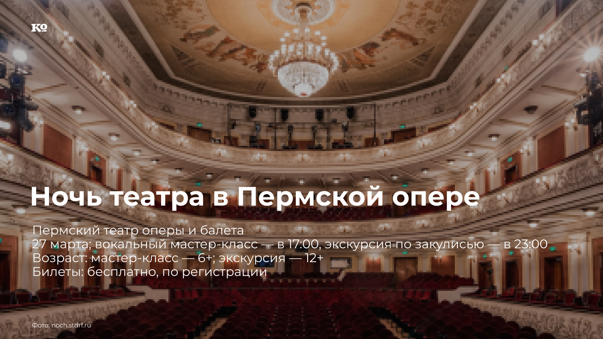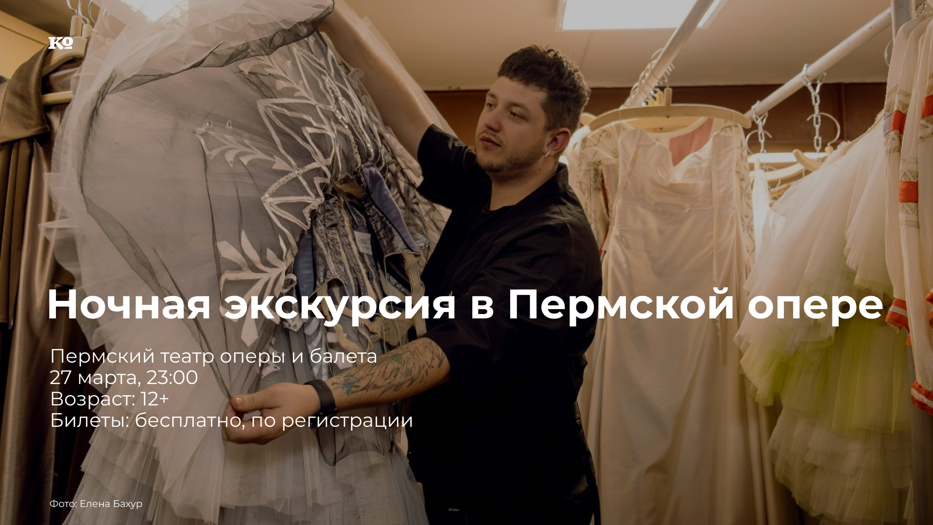 В программе «Ночи театрального искусства» в Пермской опере — несколько событий для зрителей разных возрастов. В 17:00 юных гостей театра ждёт мастер-класс с солистом оперы Сергеем Власовым: в живом и увлекательном формате дети 6-12 лет познакомятся с возможностями голоса и смогут попробовать себя в роли исполнителей. Поздно вечером пройдёт экскурсия «Закулисье: тайны театрального костюма», которую проведёт начальник костюмерного цеха Андрей Волосатых. Это возможность узнать, что происходит с театральными костюмами, когда их никто не видит, из чего на самом деле сделана балетная пачка и почему в ожидании спектакля она всегда висит «вверх ногами», почему в костюмах не используются застёжки-молнии и что делают костюмеры во время спектакля.