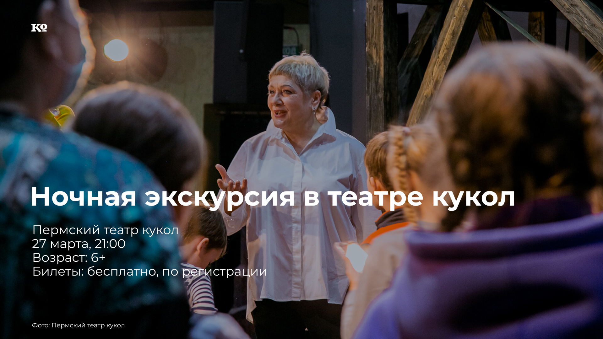 В «Ночь театрального искусства» в Пермском театре кукол пройдёт «Путешествие в Закулисье» с Ольгой Янкиной. Участники ночной экскурсии смогут побывать на сцене и в куклохранилище, а также попробуют себя в роли настоящих артистов-кукловодов. Актриса-экскурсовод не просто проведёт участников по самым потаённым уголкам театра, но и расскажет, какими бывают куклы и как ими управляют, познакомит с основными театральными профессиями, откроет главные секреты закулисья. Путешествие будет интересно и детям, и взрослым — Ольга Анатольевна всегда говорит о сложных вещах легко, интересно и с любовью к своему делу. В послужном списке у актрисы более 200 ролей, богатая география фестивалей и гастролей, работа на радио и телевидении, а также преподавание актёрского мастерства будущим артистам-кукловодам.