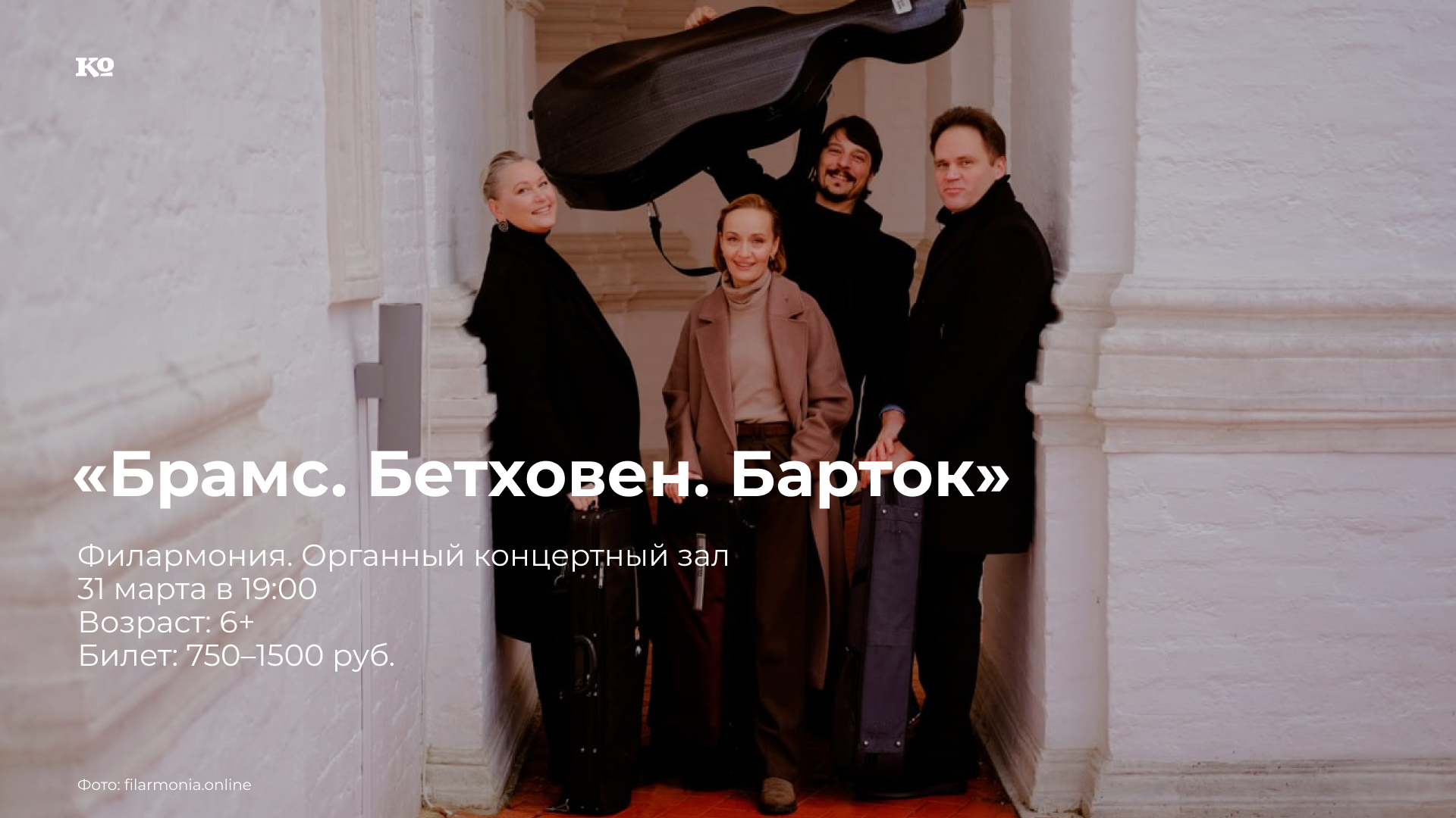 Программа концерта объединит три эпохи европейской музыки. Прозвучат сочинения, раскрывающие эволюцию струнного квартета, — от классической ясности Бетховена через романтическую глубину Брамса до новаторского языка Бартока. Особенностью вечера станет исполнение монументальной «Большой фуги» Бетховена — произведения, опередившего своё время и ставшего мостом между классицизмом и музыкальным авангардом. Контраст между лирическим квартетом Брамса и экспрессивной партитурой Бартока покажет все многообразие возможностей четырёх струнных инструментов.