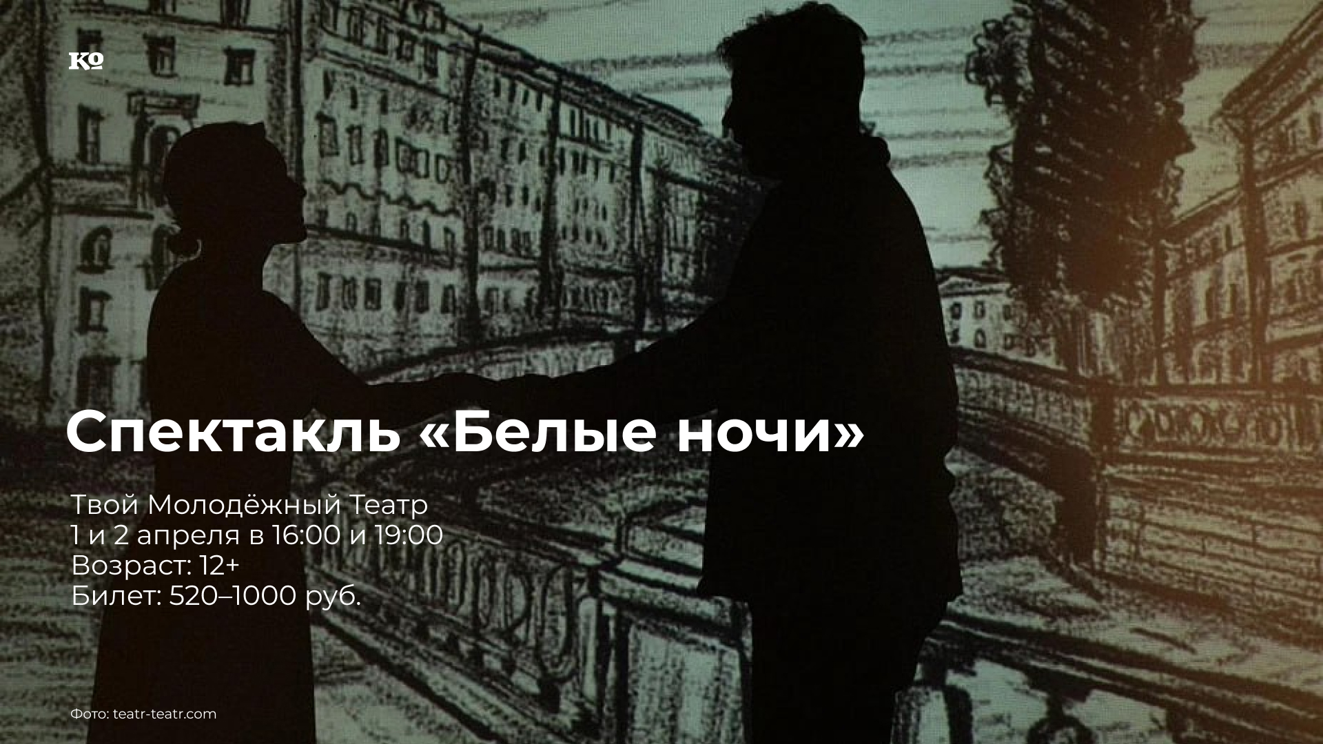 Состоится показ спектакля-сторителлинга по мотивам одноимённой повести Ф. М. Достоевского. Экран, два актера, скамейка – все, что нужно, чтобы в нюансах представить лёгкую и мелодраматичную, на первый взгляд, историю о несостоявшейся любви Мечтателя с девушкой Настенькой. Вместе с ними зрители погрузятся в природу мечтаний, фантазий и мрачных сновидений. Именно в «Белых ночах» начал проявляться психологизм его авторской прозы Ф. М. Достоевского, стремление постичь всю глубину и неоднозначность человеческой личности, что тонко и точно через жанр сторителлинга разыгрывается молодыми артистами. Даже при минималистичной сценографии, благодаря атмосферной анимации, музыке и использованию приёмов театра теней, зрители смогут погрузиться в хрупкий мир необыкновенных персонажей и очутиться в сюрреалистичном Петербурге Достоевского.