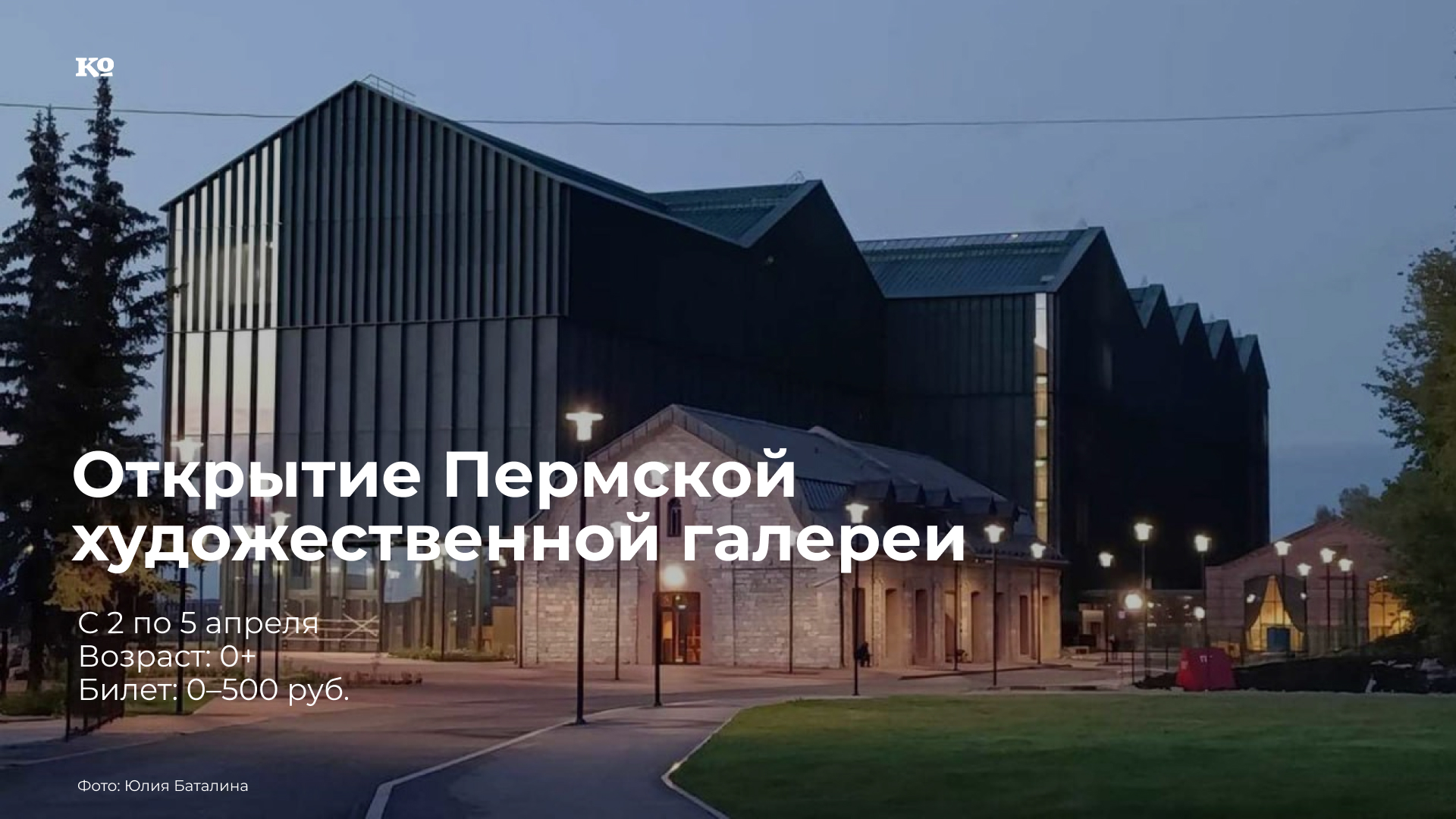 Со 2 по 5 апреля в Пермской государственной художественной галерее состоятся Дни открытия. Это не просто начало работы музея в новом здании – это рождение нового музейного мира, события, значение которого выходит далеко за пределы региона. Теперь пермяки и гости города смогут увидеть, как современные инженерные решения здания и увеличение экспозиционных площадей открывают качественно новые возможности для показа коллекций. Публике будут представлены экспозиции, посвященные разным периодам отечественного искусства, начиная с XV века (в том числе – наследию Строгановых) до середины XX (включая авангард), западноевропейскому искусству XV–XIX веков, а также артефактам из кабинета древностей и бронекладовой. Сердцем музейного пространства стала новая экспозиция пермской деревянной скульптуры. Кроме того, к открытию специально подготовлены выставки, отражающие разные грани жизни нового музея: «Дом», «Искусство по полочкам», «Распаковка», «Пермяк и Парма». Вход в галерею осуществляется через ворота со стороны корпуса «Точка Кипения». Для удобства посетителей с остановки «Театральный сквер» на ул. Сибирской до входа в галерею будет курсировать брендированный автобус. Узнать подробности и приобрести билеты можно на сайте https://permartmuseum.ru/.