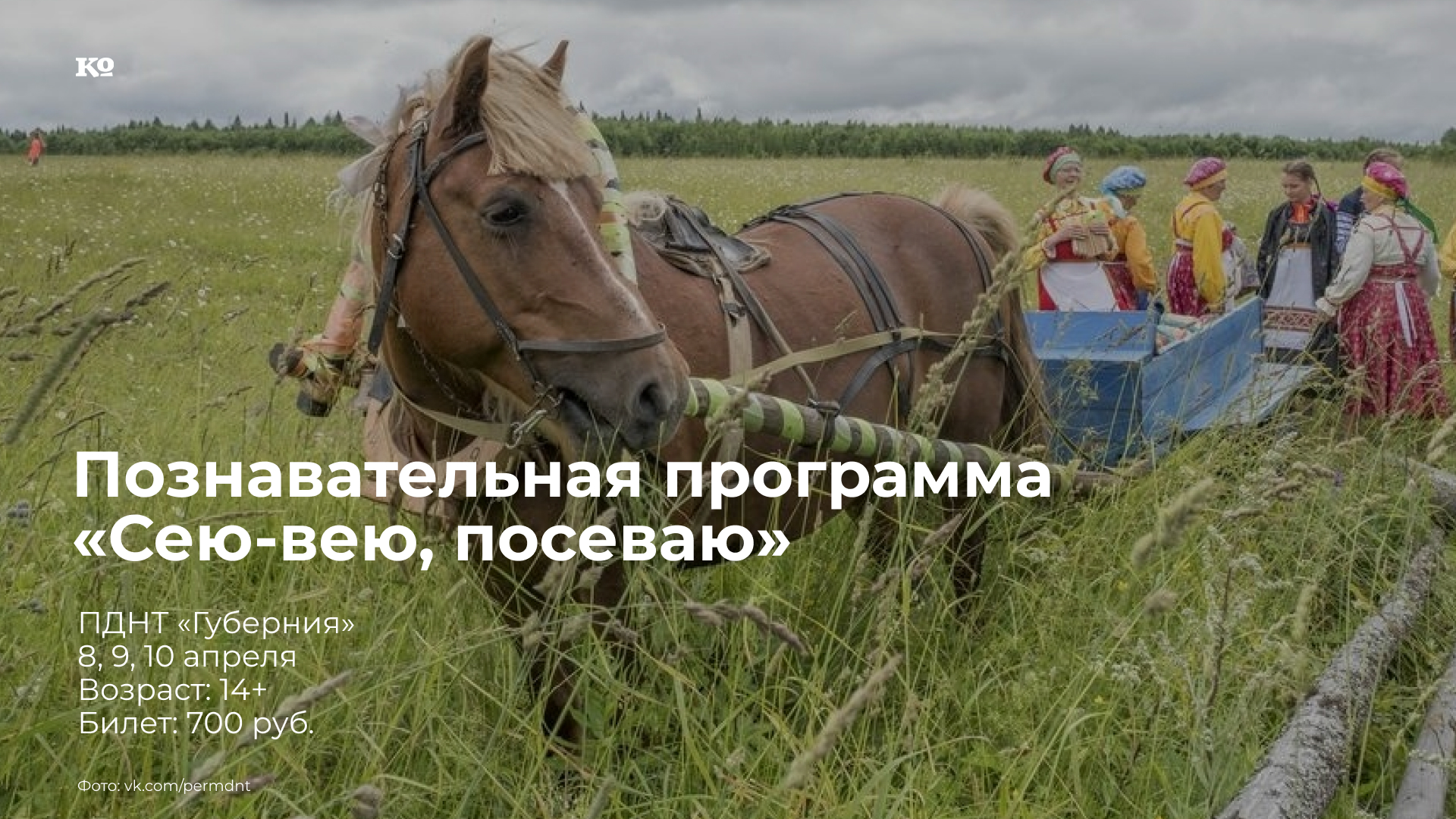 Программа опирается на традиции народного календаря, связанные с первыми неделями весны, весенним новолетием и началом земледельческого года, а также на полевые этнографические материалы, зафиксированные в экспедициях по Пермскому краю. Это путешествие в мир весенних обрядов и обычаев — о том, как наши предки встречали новый земледельческий год, как готовились к полевым работам и какие традиции сопровождали их в этот период. Программа раскрывает связь человека с природой, с лошадью — главной помощницей в хозяйстве, и показывает красоту весенних молодёжных игр. Гостей ждёт погружение в атмосферу через разные форматы: показ документального фильма «Запрягаем по коми-пермяцки», снятого в экспедиции в д. Бочманова; участие в традиционных весенних молодёжных играх; создание старинного пасхального украшения-фонарика «Мизгирь» (или «Метляк»), бытовавшего в поселениях Пермской губернии; возможность сфотографироваться с предметами крестьянского быта и узнать о весенних земледельческих работах. Мастер-класс проводит народный мастер Пермского края Елена Аглая Ивановна.
