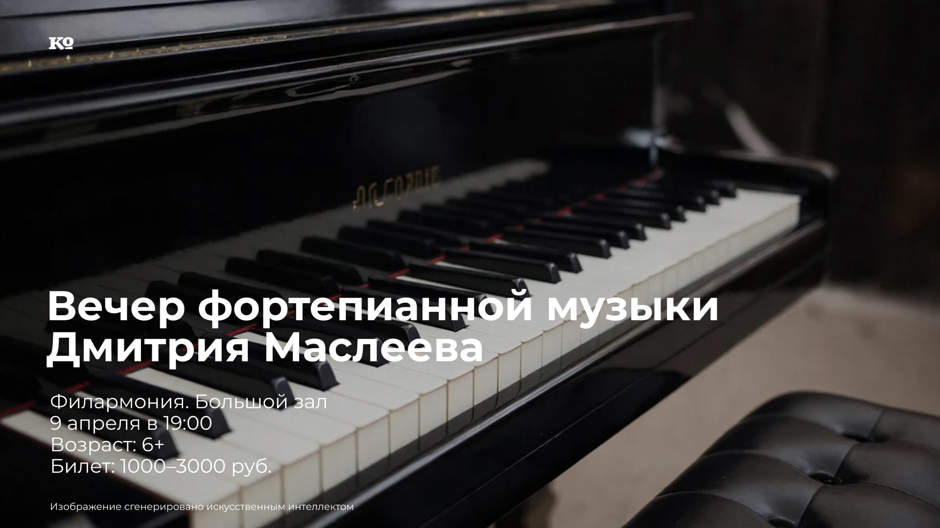 Лауреат международных конкурсов Дмитрий Маслеев стал известен после триумфа на конкурсе им. П.И. Чайковского в 2015 году. Он представит программу, которая включает произведения великих композиторов. Так, в первом отделении зрители смогут насладиться Сонатой ля минор № 8 Вольфганга Амадея Моцарта и Сонатой До мажор № 3 Людвига ван Бетховена. Во втором отделении прозвучат Пьесы из цикла оп. 72 Петра Чайковского.