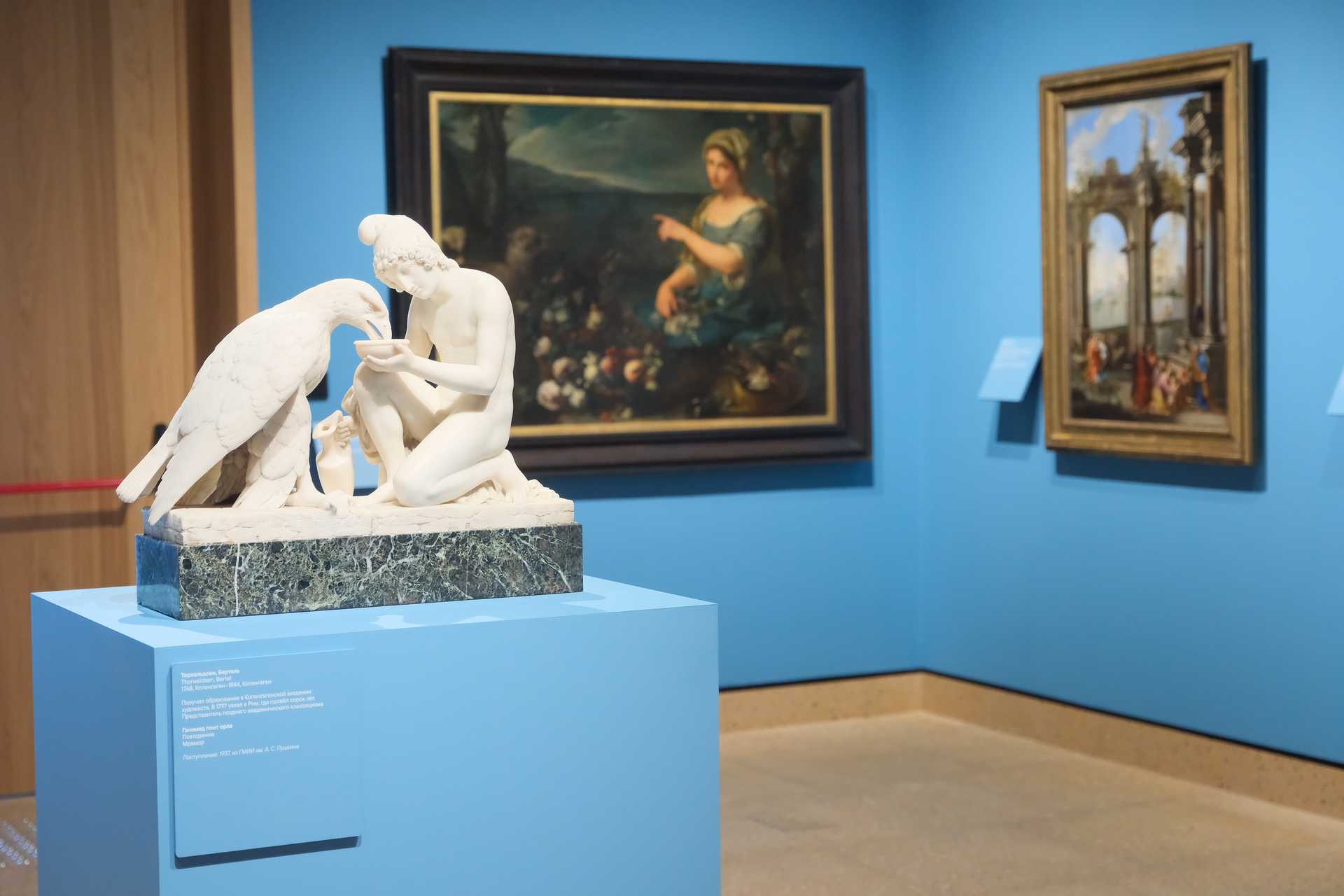Ощущение классического европейского интерьера подчёркивается деталями — например, вертикальными витринами, на которых выставлены редкие старинные издания по искусствоведению — солидные тома в кожаных переплётах, с хрупкими полупрозрачными страницами. Что это за книги, подробно рассказано на интерактивных панелях. Визит в этот музей — сочетание созерцания с чтением.