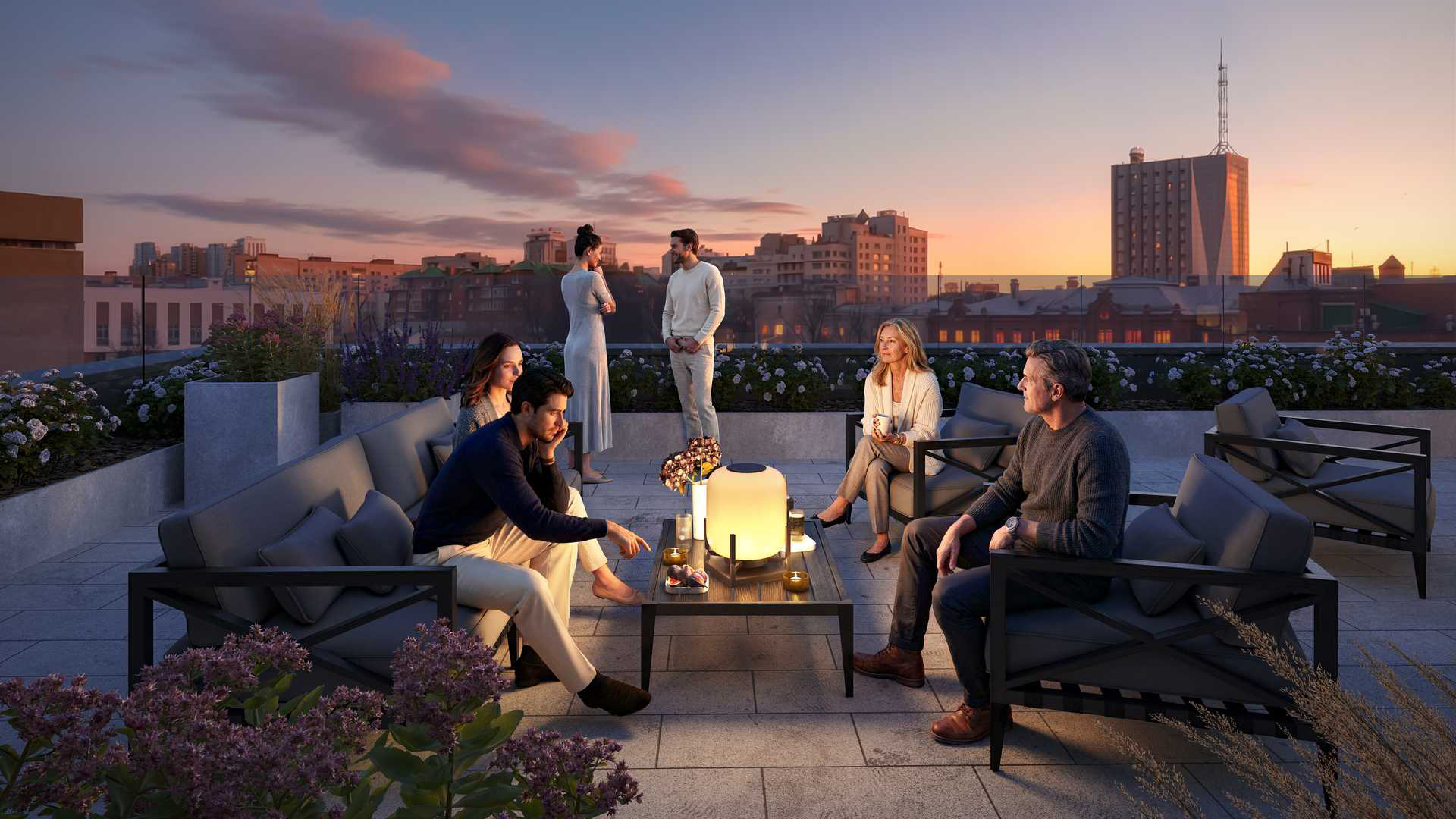 Украшением дома станут расположенные на крыше частные и общественные террасы. Здесь резиденты смогут насладиться уединением, урбанистическими пейзажами и мерцающими огнями города. Кроме общедоступных пространств на крыше для всех жителей, можно выбрать уникальный формат квартиры с собственной террасой.