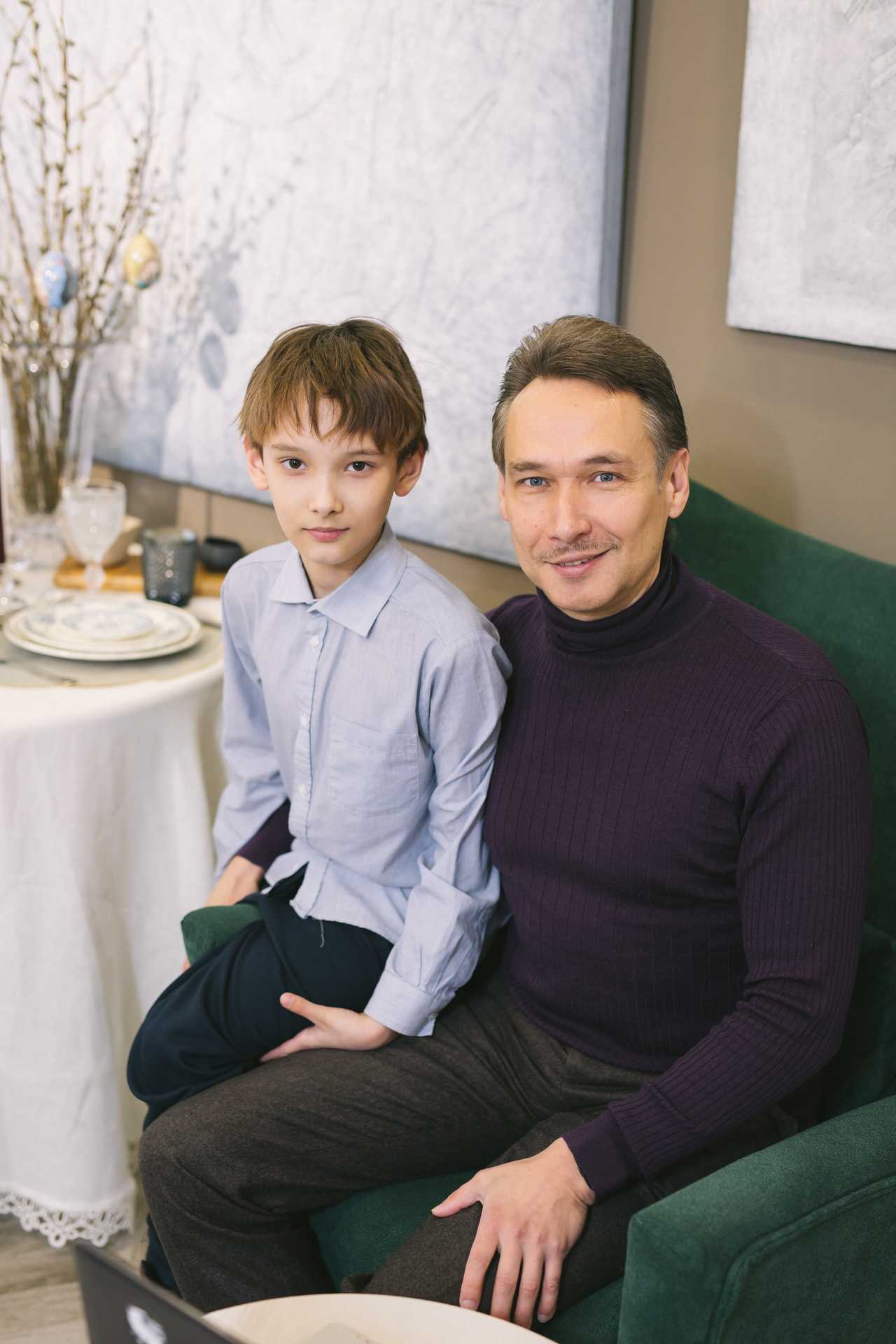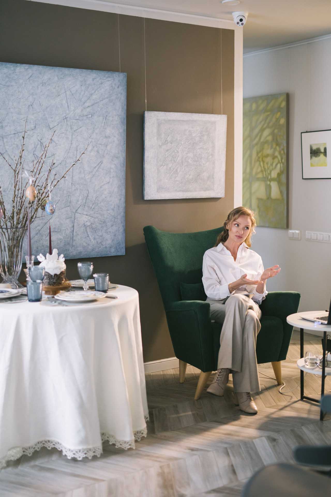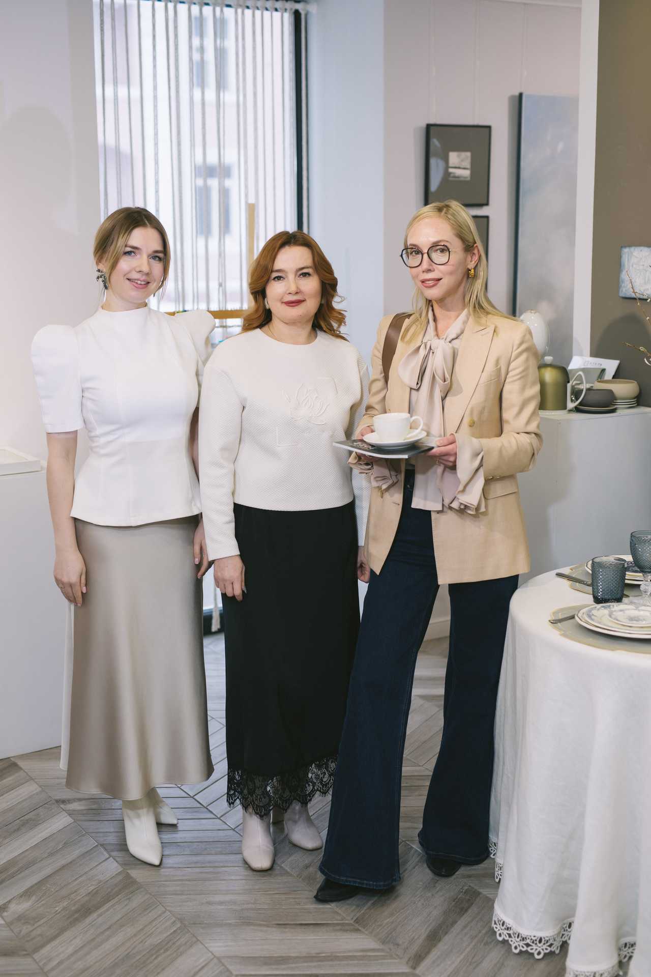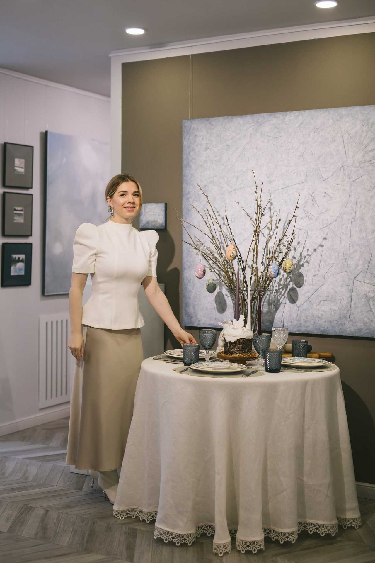 Любимый цвет художника — синий, на его основе Побережник создаёт множество непростых оттенков. Праздничный стол, сервированный для мероприятия салоном премиальной посуды и декора «Марфа», который расположен в историческом центре города (ТЦ «Галерея», ул. Сибирская, 37), очень гармонировал с выставочными работами. Эксперт по сервировке, основатель салона Мария Лукошко выбрала бело-синий фарфор — модное сочетание, которое в наши дни предпочитают любители столовой эстетики.