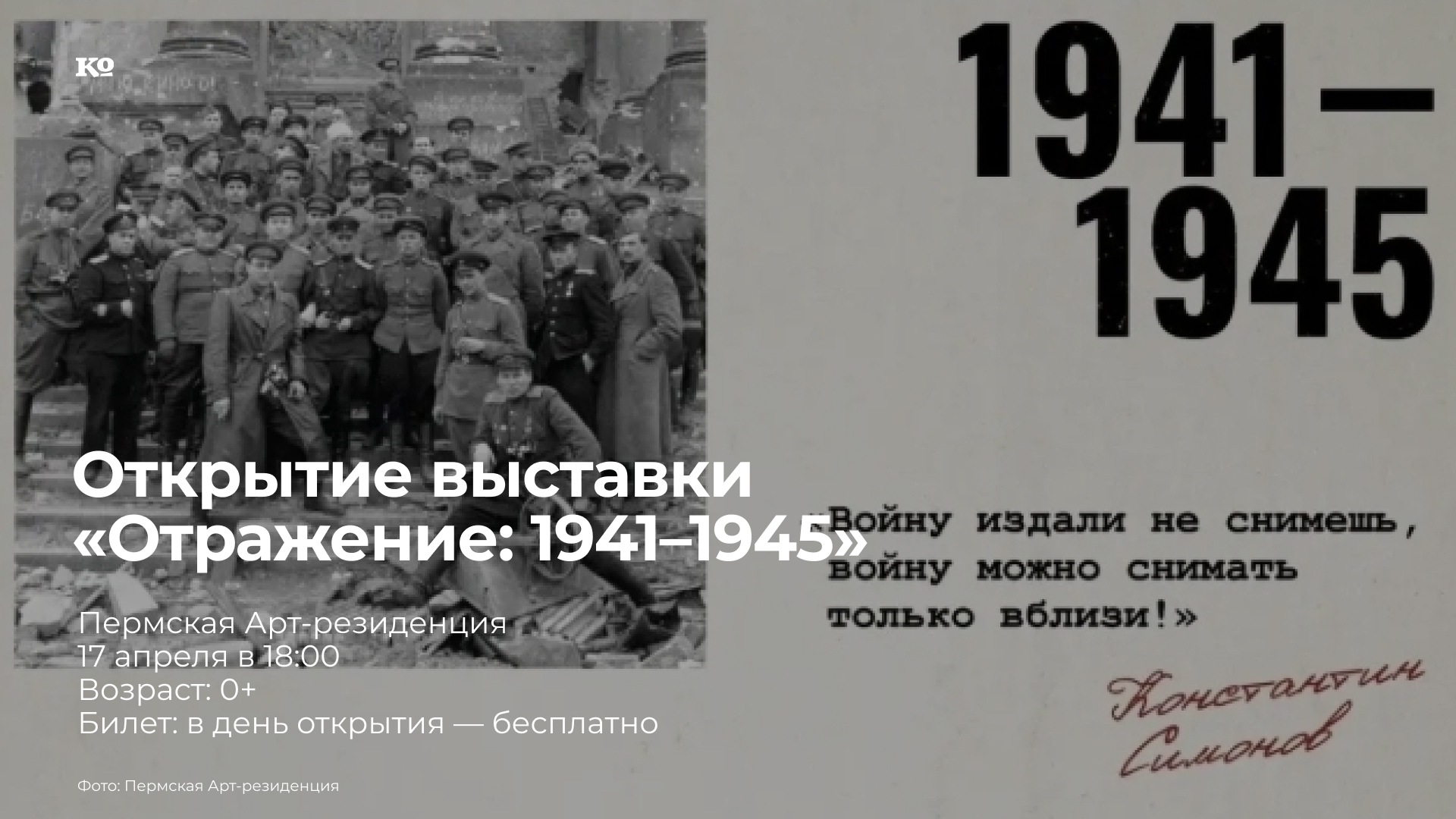 Проект «Отражение: 1941-1945» направлен на показ ключевых событий Великой Отечественной войны через запечатленные в творчестве фронтовых корреспондентов живые образы героев тех лет и кадры фронтовых репортажей. В экспозиции, посвящённой героической работе фронтовых корреспондентов, представлены фотоработы из архива Совинформбюро, преемником которого является международная медиагруппа «Россия сегодня», и фондов Музея-заповедника «Сталинградская битва». Также на выставке будет представлен цикл короткометражных фильмов, созданных в рамках проекта «Отражение 1941-1945», раскрывающий судьбу фронтовых корреспондентов Великой Отечественной войны.