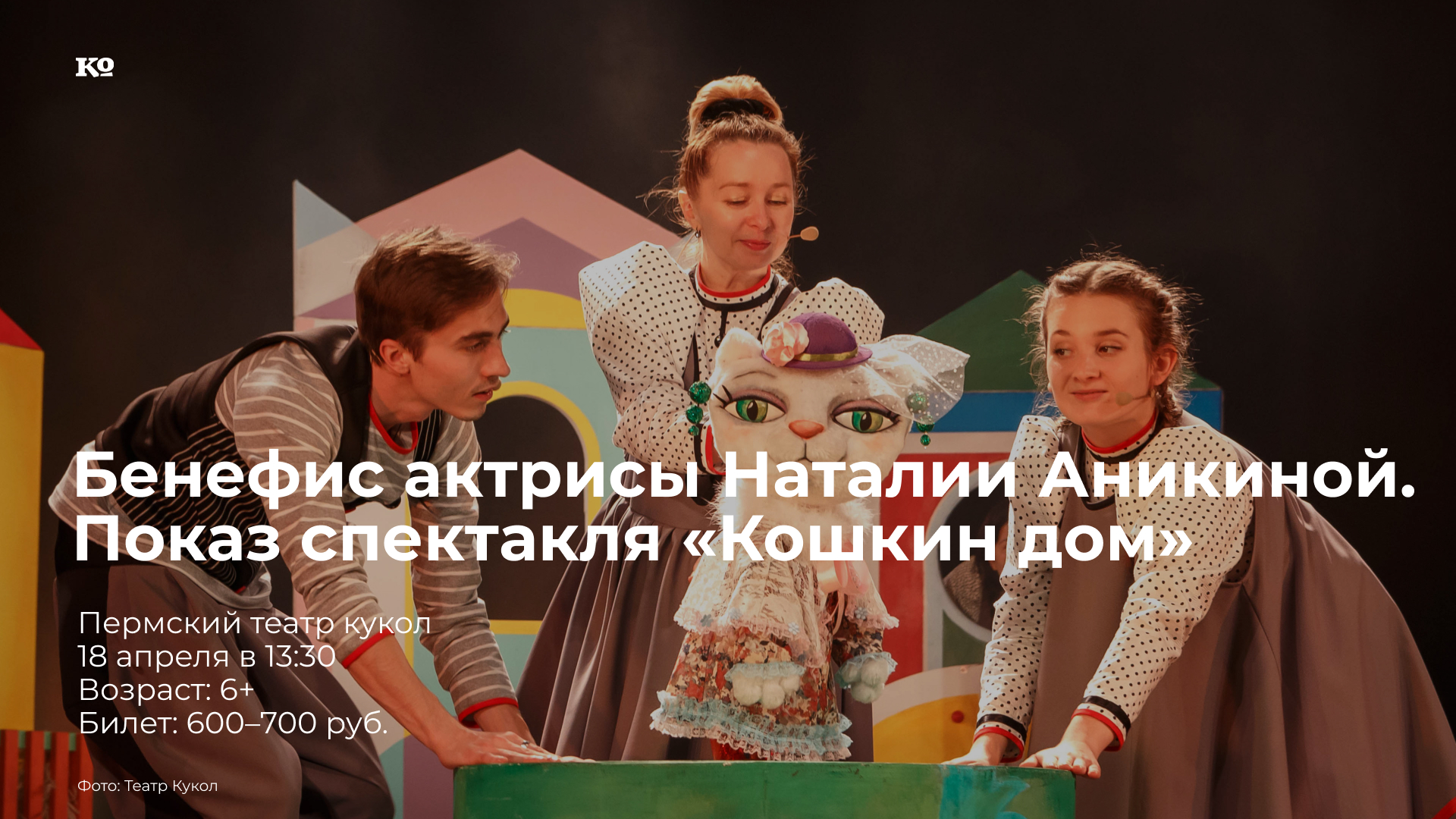 Наталия Аникина знает, что такое настоящее служение искусству: она предана куклам с самой юности. Актриса пришла в Пермский театр кукол в 1991-м после окончания Нижегородского театрального училища (курс Рузанны Бунатян) и органично влилась в репертуар театра. Первой её ролью стала Принцесса в спектакле «Принцесса на горошине». За эти годы она сыграла более 100 разноплановых ролей. Для своего бенефиса актриса выбрала спектакль «Кошкин дом», в котором она исполняет главную роль Кошки. История обаятельной и легкомысленной героини оборачивается притчей о ценности семейных связей и поддержки. Наталия Аникина создала уникальный многогранный образ героини, которая переживает потрясение и перерождается к новой жизни. После показа спектакля на сцене театра пройдёт торжественная часть с поздравлениями от депутата Пермского городской думы Д.А. Фёдорова, иллюзиониста Ильи Бастракова, артистов труппы, руководства театра и гостей вечера.