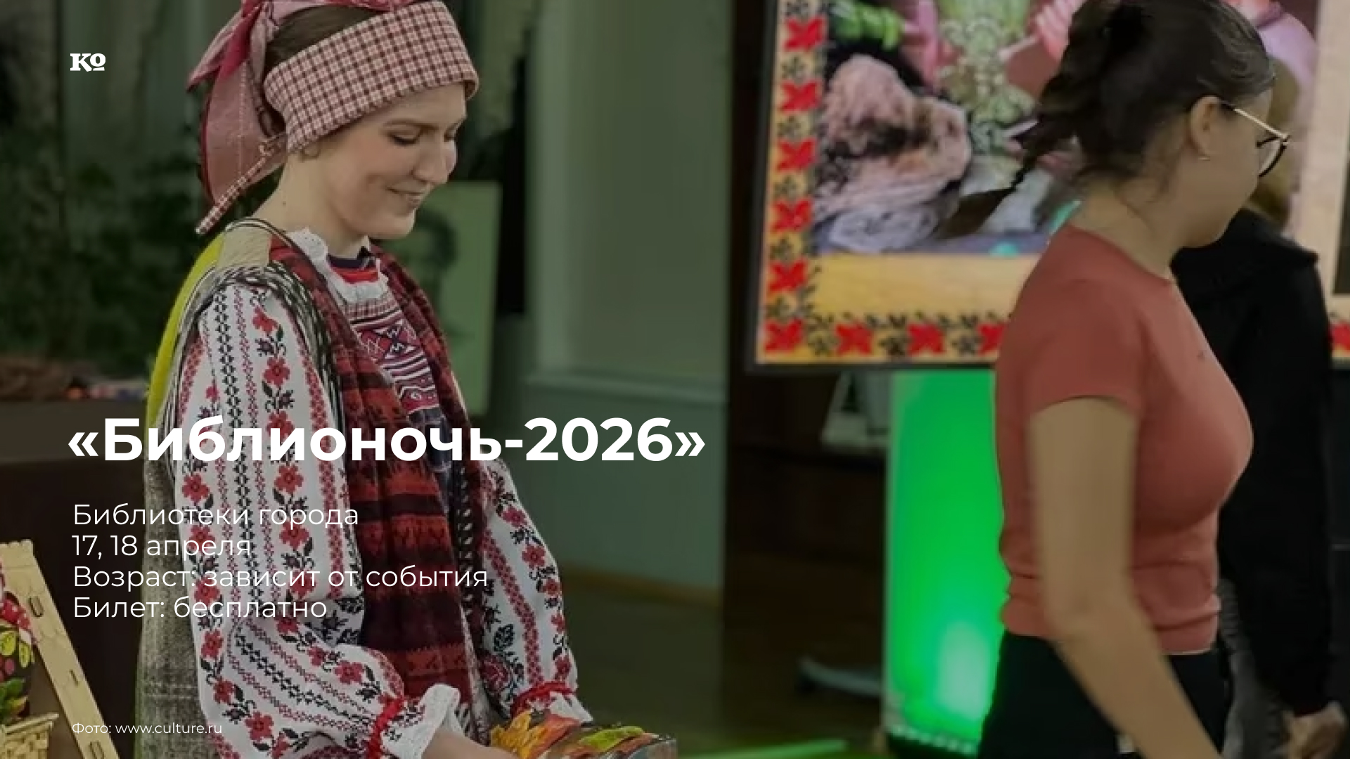 Библионочь — это ежегодная социально-культурная акция, посвящённая чтению, которая проходит в апреле по всей России. В эту ночь библиотеки, книжные магазины, литературные музеи и арт-пространства расширяют время и формат своей работы. Мероприятие посвящено Году единства народов России. Городские библиотеки приглашают на обширную программу. В модельной библиотеке № 8 им. Н.А. Островского 17 апреля с 17:00 до 21:00 запланированы мастер-классы, литературно-развлекательная и фольклорные программы, игры, а также будет организована фотозона (0+). 18 апреля с 16:00 до 00:00 Центральная городская библиотека им. А.С. Пушкина вновь станет площадкой всероссийской акции. В библиотеке запланировано масштабная программа для детей старше 12 лет. Подробности — на официальной странице муниципальных библиотек Перми.