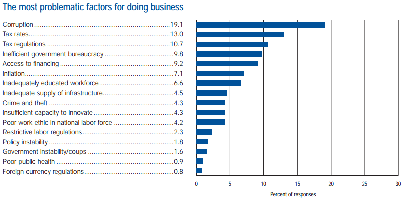 Недавно World Economic Forum (WEF) опубликовал «Global Competitiveness Report 2013-2014». Наиболее проблемными для России называются следующие факторы: