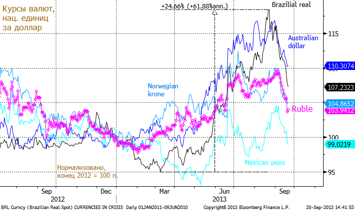 Главная причина укрепления все-таки не сезонность, а решение ФРС не начинать «сведение на нет» QE c сентября. С фундаментальной точки зрения следует ожидать роста заимствований, которые отчасти будут конвертироваться в рубли и тратиться на территории России. Это и есть приток капитала, укрепляющий национальную валюту. Вот сообщение «Блумберг», объявляющее открытие «окна» для размещения российскими компаниями на Западе.