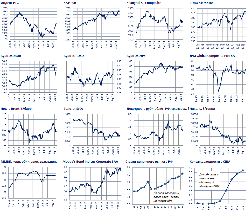 S&P 500 и STOXX Europe 600 оба показали вчера минус 0.5%, индекс ММВБ минус 0.6%. Все названные индексы отыграли обратно скачек, случившийся в среду-четверг после заседания FOMC, отказавшегося пока сокращать программу QE. По большому счету, ни больших движений, ни важных новостей на рынке нет.