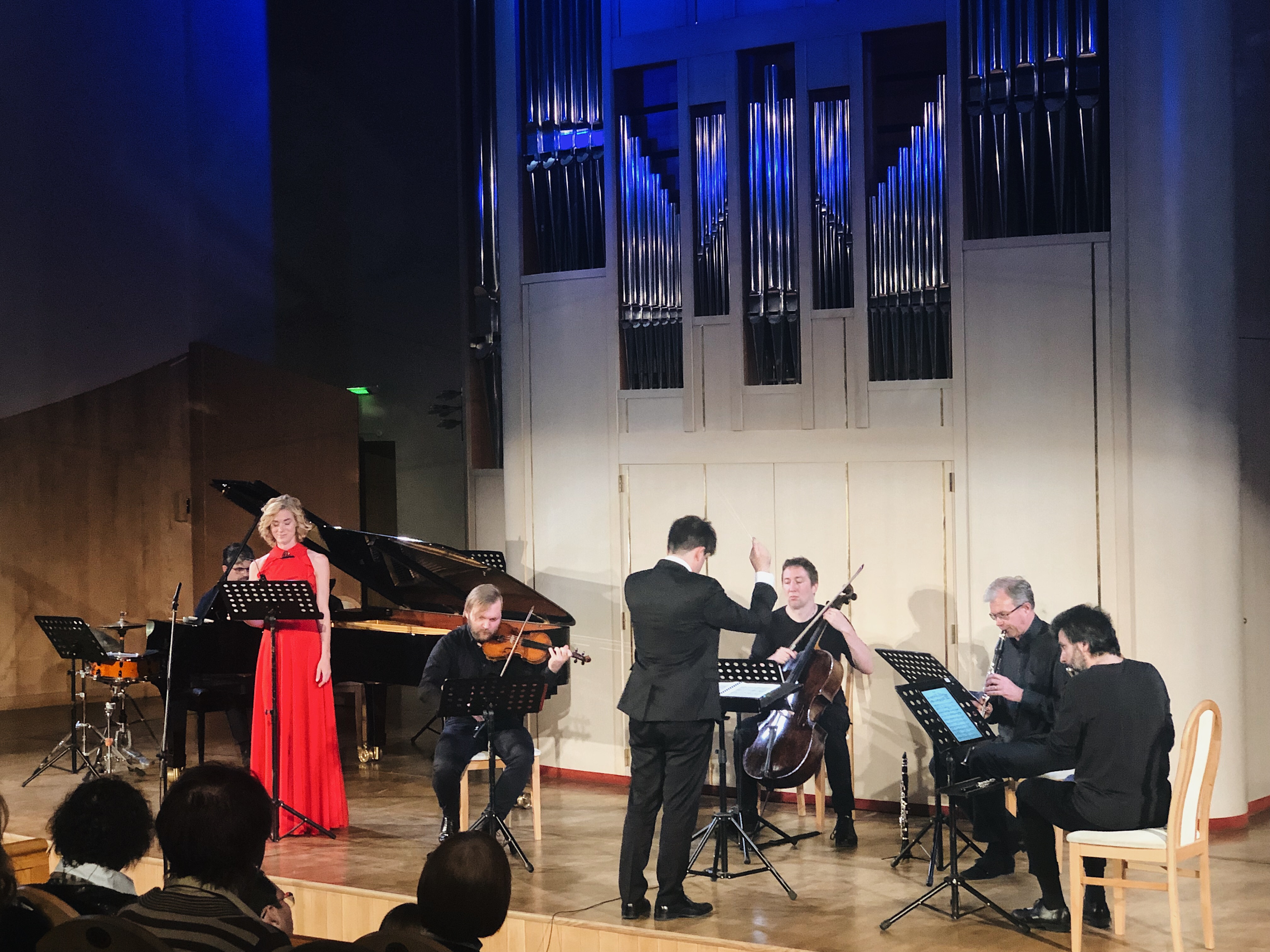Я впервые на Дягилевском фестивале — и сразу с мировыми премьерами. В первый день была представлена опера «Периодическая система» в «Триумфе», а через час — ещё один концерт трёх молодых композиторов. Я не успеваю спать, но это хорошо, ведь мы на фестивале».