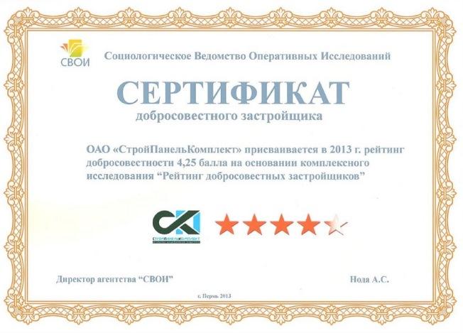 Социологическое агентство СВОИ завершило очередное масштабное исследование строительного рынка Перми в сегменте жилищного строительства. Согласно Рейтингу добросовестных застройщиков, ОАО «СтройПанельКомплект» (СПК) признано одним из лидеров строительного комплекса Перми.